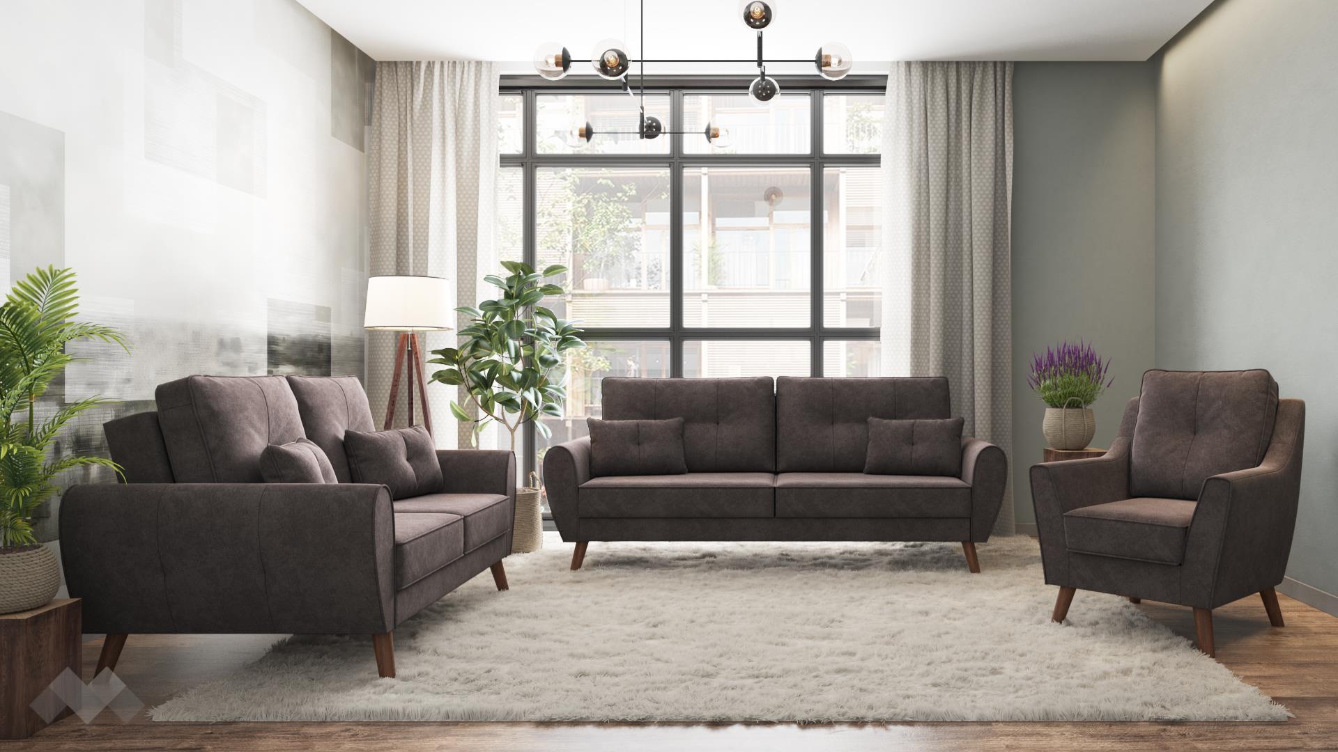 Комплект за дневна Мерива е съчетание от комфорт, стил и функционалност, което ще превърне всяко помещение в уютно и хармонично пространство. Двуместният и триместният диван, заедно с удобния фотьойл, предлагат идеалното решение за ежедневна почивка, срещи с приятели или практично допълнително място за сън. Семплият и елегантен дизайн с изчистени линии придава класическа визия, която лесно се вписва във всеки интериор.