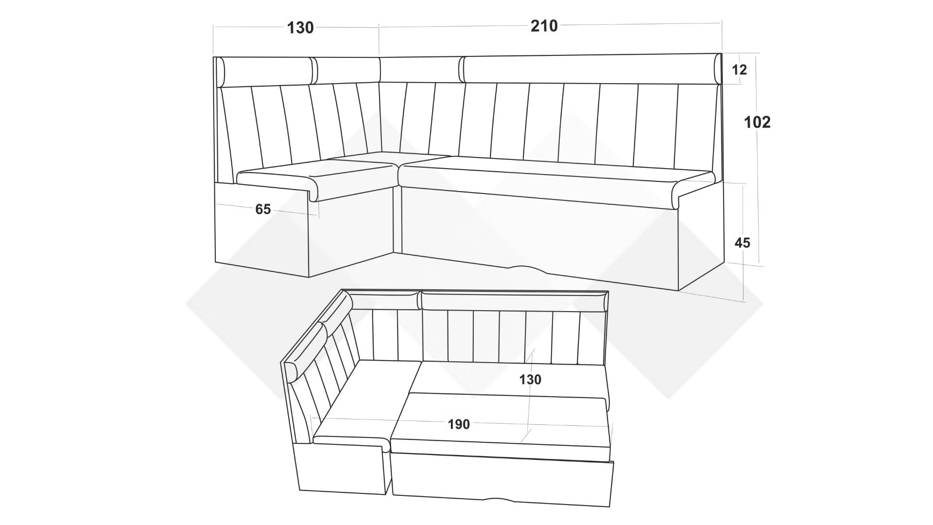 Посоката на ъгъла е универсална, сам избираш как да го разположиш в помещението. Височината на ъгъла и твърдостта му е съобразена с необходимата височина за седене при хранене. Позицията на гърба е по-изправена, отново съобразена с оптималната поза за хранене.