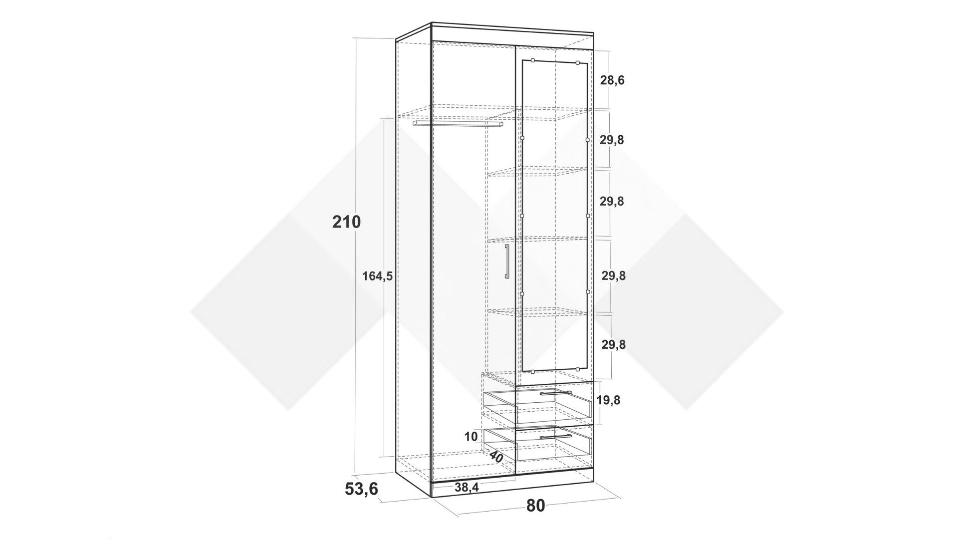 Д: 80 см Ш: 53.6 см В: 210 см