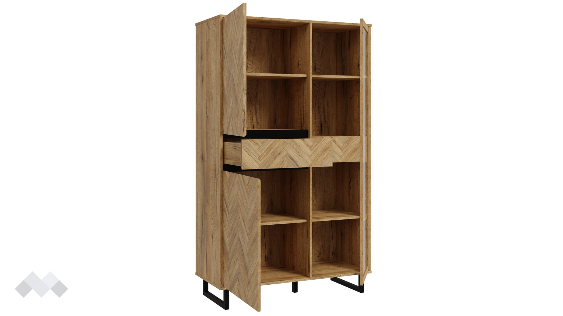 ⭐ Предимства: ✓ функционално място за съхранение ✓ практично разпределение ✓ елегантен дизайн ✓ модерен декор ✓ остъклена врата ✓ 4 рафта ✓ 2 чекмеджета ✓ висококачествена изработка ✓ 15 мм ПДЧ