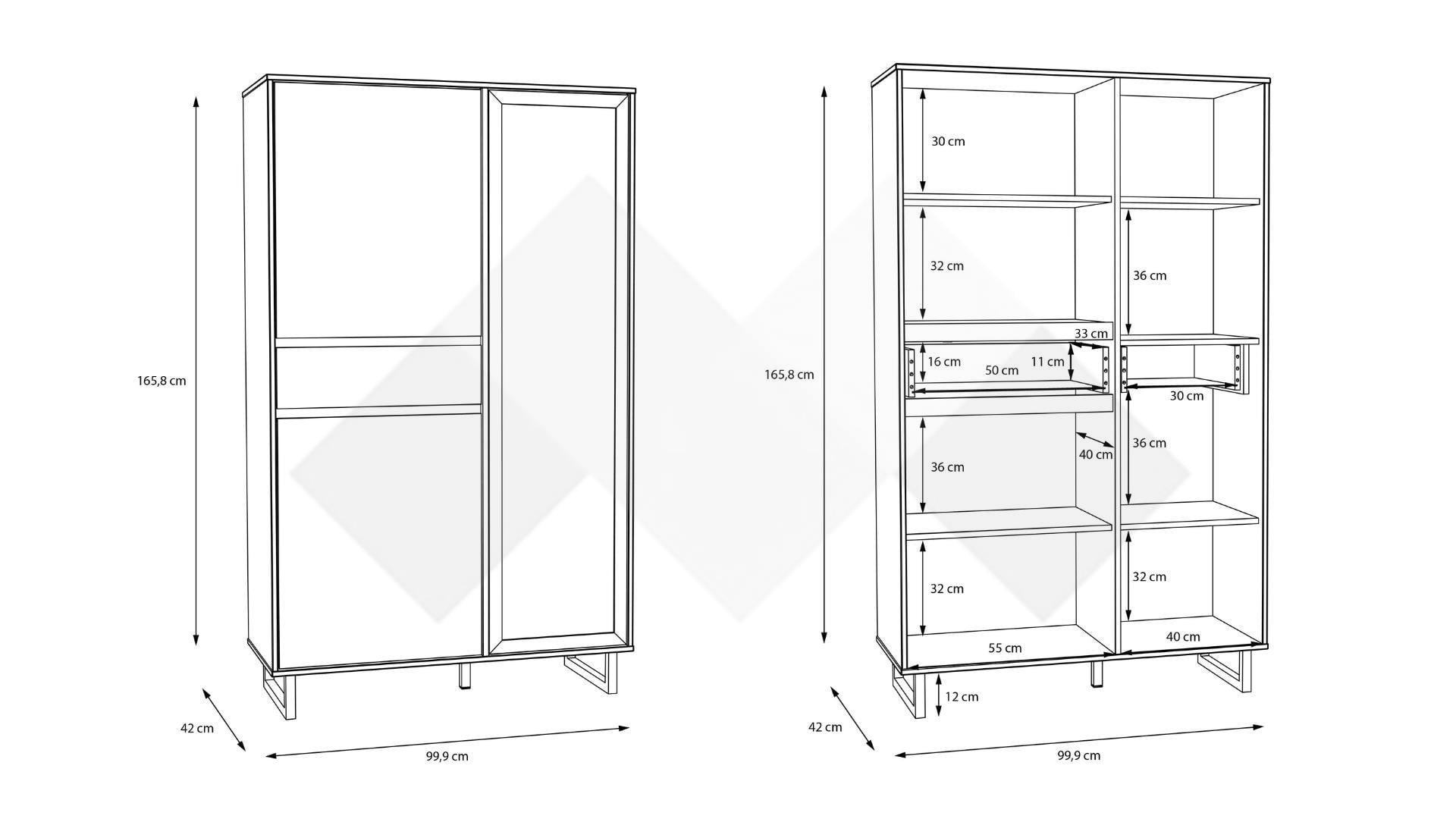 Д: 99,9 см Ш: 42 см В: 165,8 см