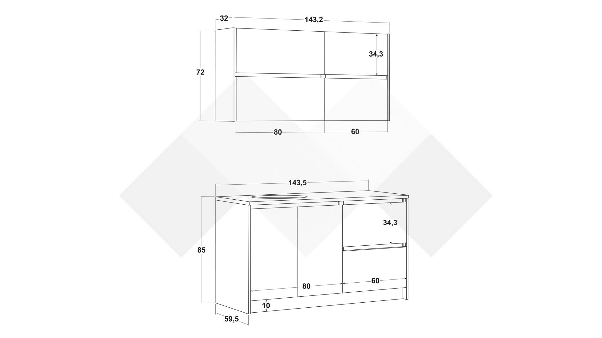 Благодарение на функционалното разпределение ще имаш достатъчно място за всичко необходимо – от посудата и приборите до любимата ти кафе машина или декорация.Компактният размер прави модела подходящ както за малки апартаменти, така и за студиа, като същевременно запазва усещането за простор и лекота.