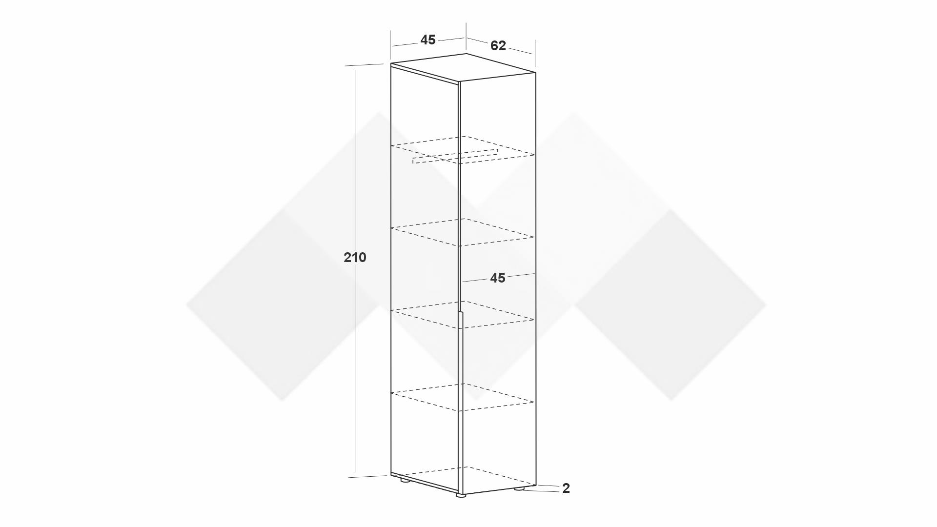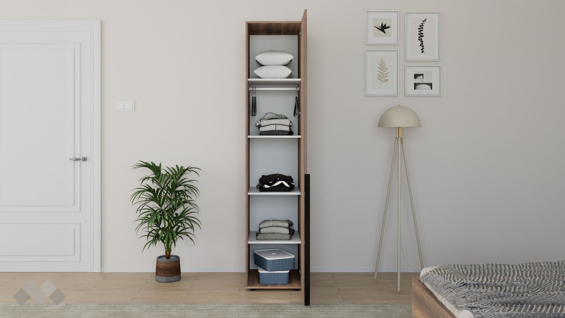 Еднокриленият гардероб Огняна съчетава удобство, функционалност и модерен дизайн, като предлага практично решение за подредено съхранение на дрехи и вещи. Подходящ е за различни помещения – спалня, детска стая или коридор, където ще допринесе за по-добра организация и подреден интериор.