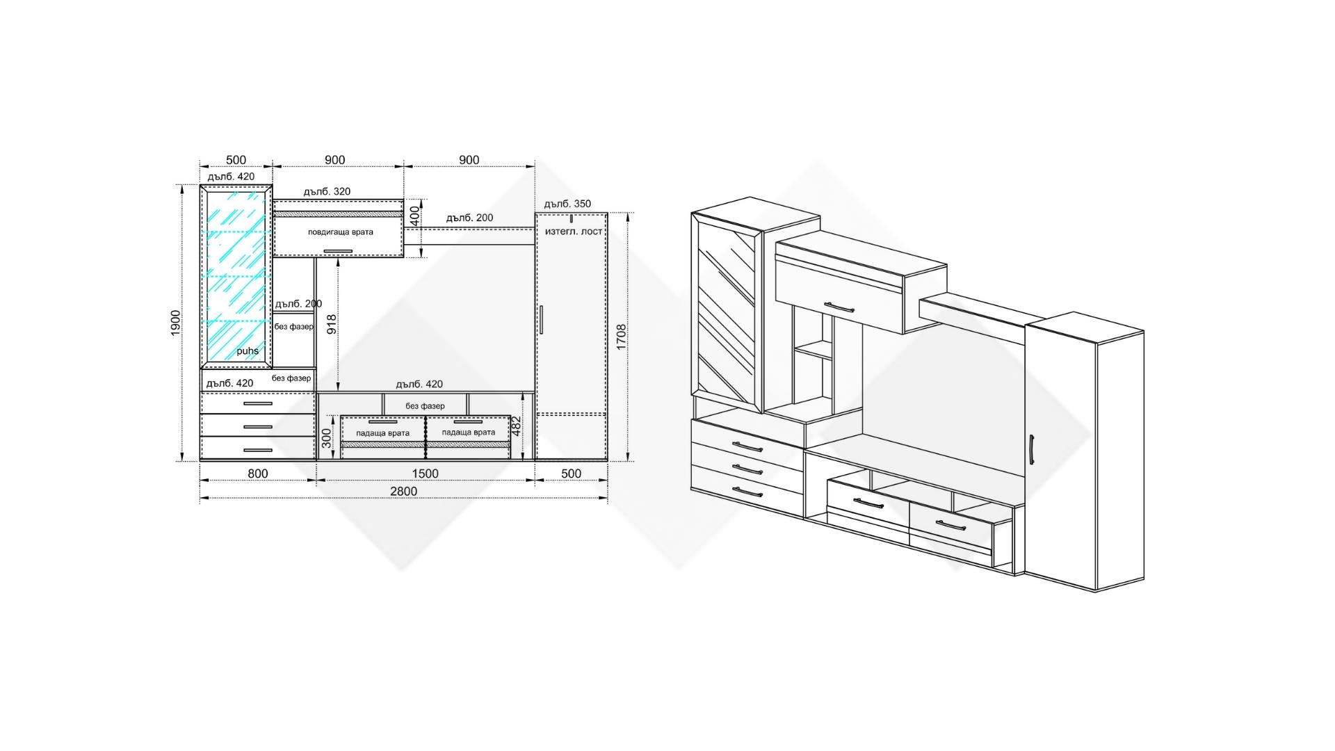 Ако имаш достатъчно място в хола, възползвай се от секция Омаха. Тя ще ти предложи чудесно разпределено пространство между отворени рафтове, витрина, гардероб, чекмеджета, шкафове. Вратичките са с плавно затваряне, а витрината е с пуш бутон - малки екстри, които внасят много лукс и удобство в ежедневието.