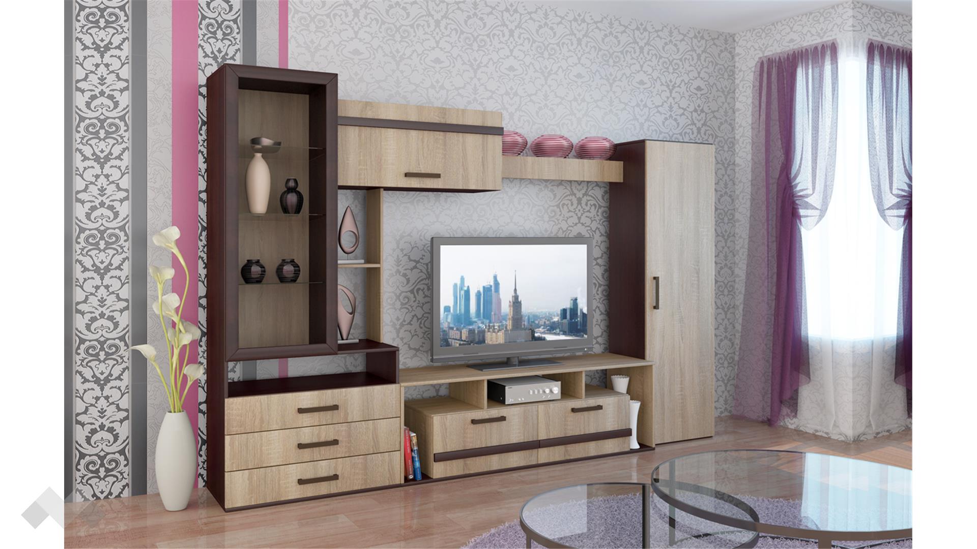 СекцияОмахатъмна сонома с венге с витрина