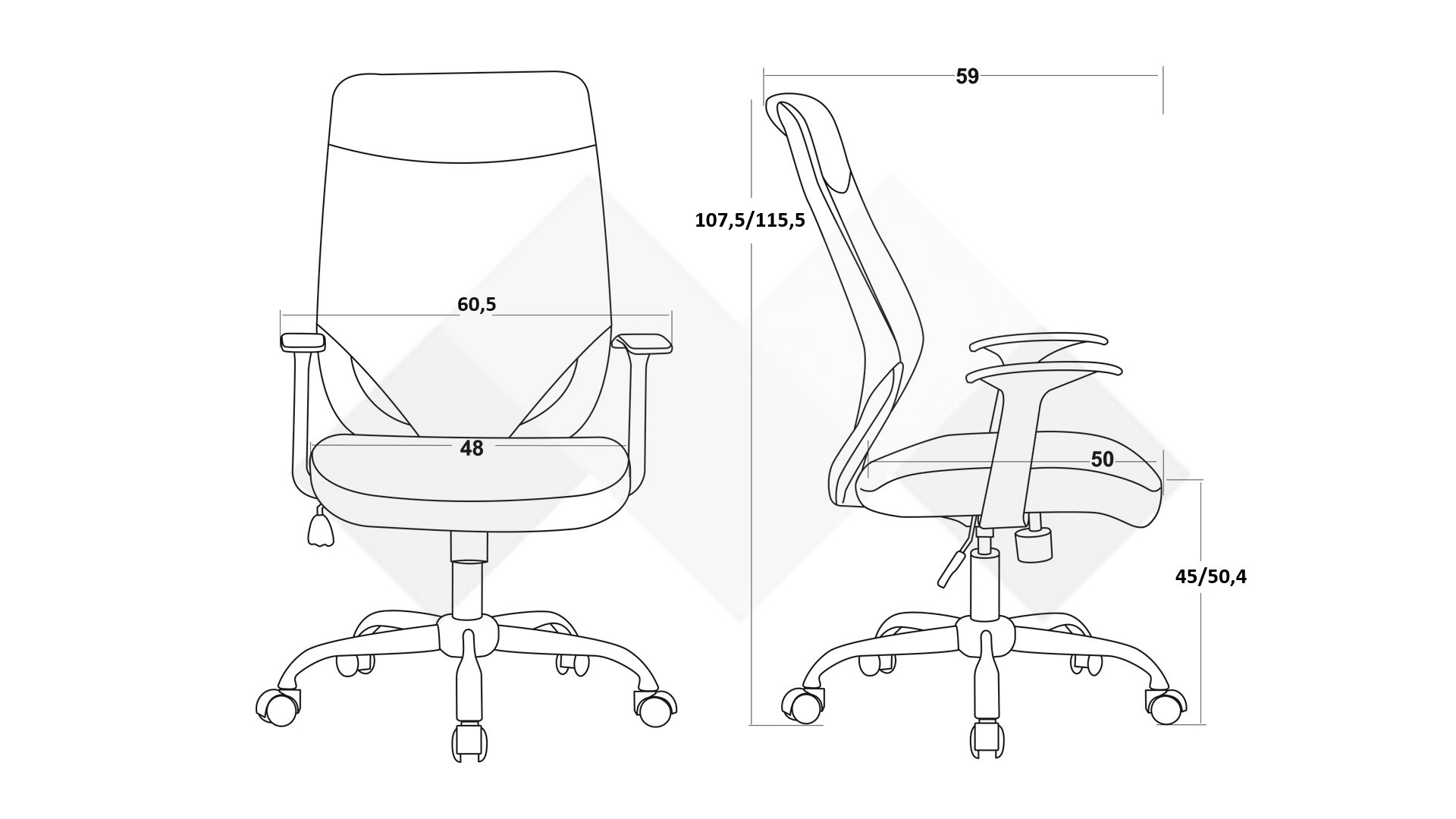 Д: 59 см. Ш: 60,5 см. В: 115,5 см.