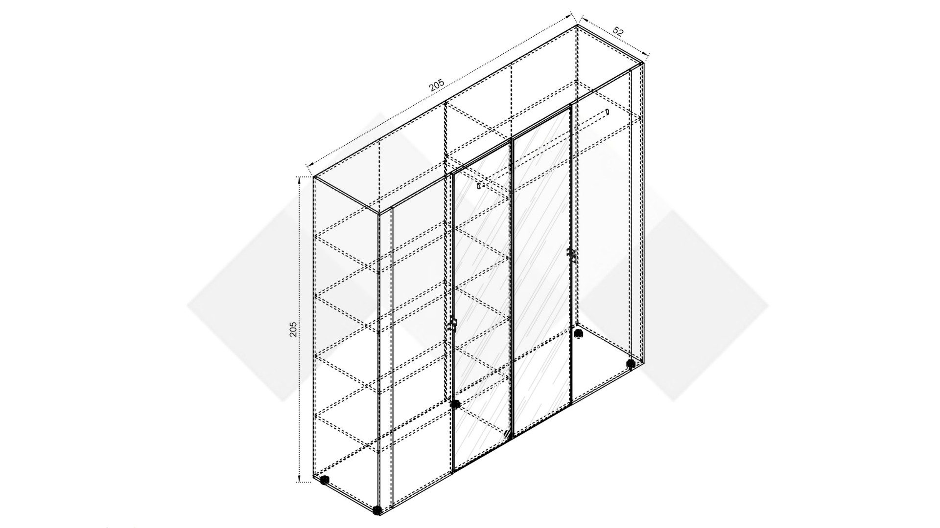 Д: 205 см Ш: 52 см В: 205 см