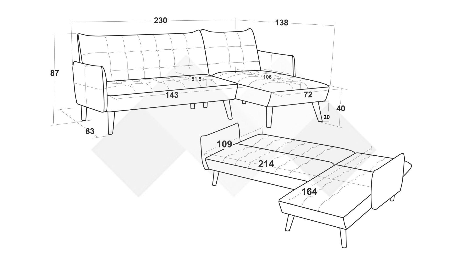 Площ за сън: Д: 214 см Ш: 164 см