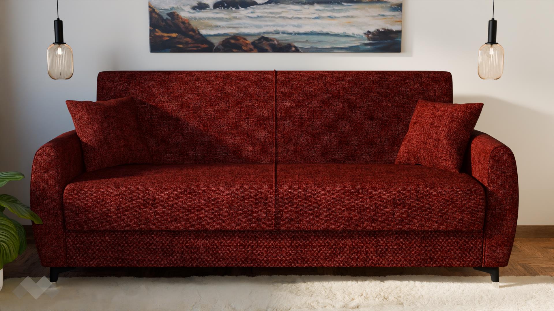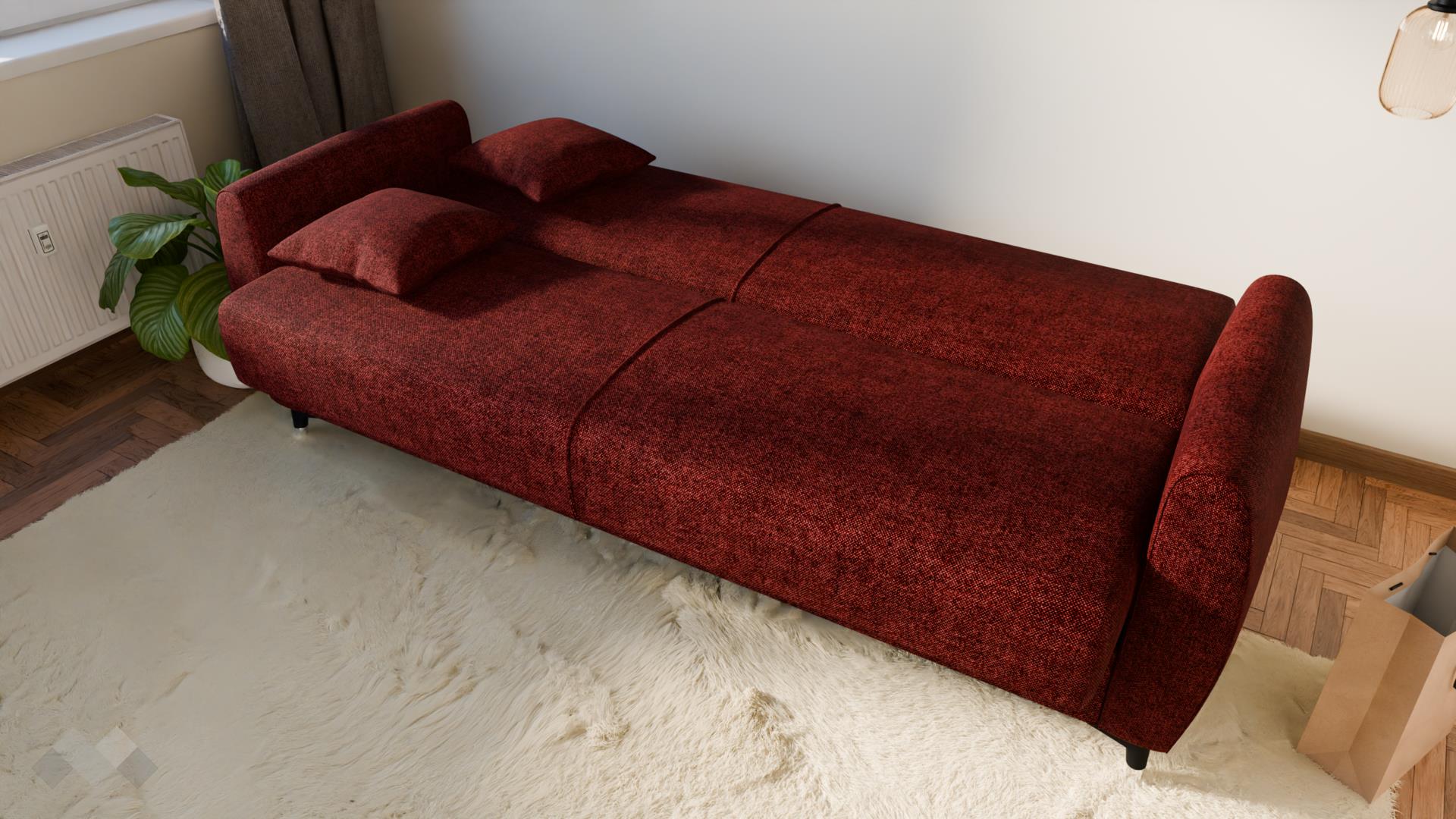 Диванът разполага с функция сън с размер 105/190 см, която бързо и лесно го превръща в удобно легло с клик-клак-механизмът - идеално както за ежедневна употреба, така и за гости. Благодарение на практичната ракла за съхранение, можеш удобно да подредиш одеяла, възглавници и спално бельо, без да заемаш допълнително място в стаята.