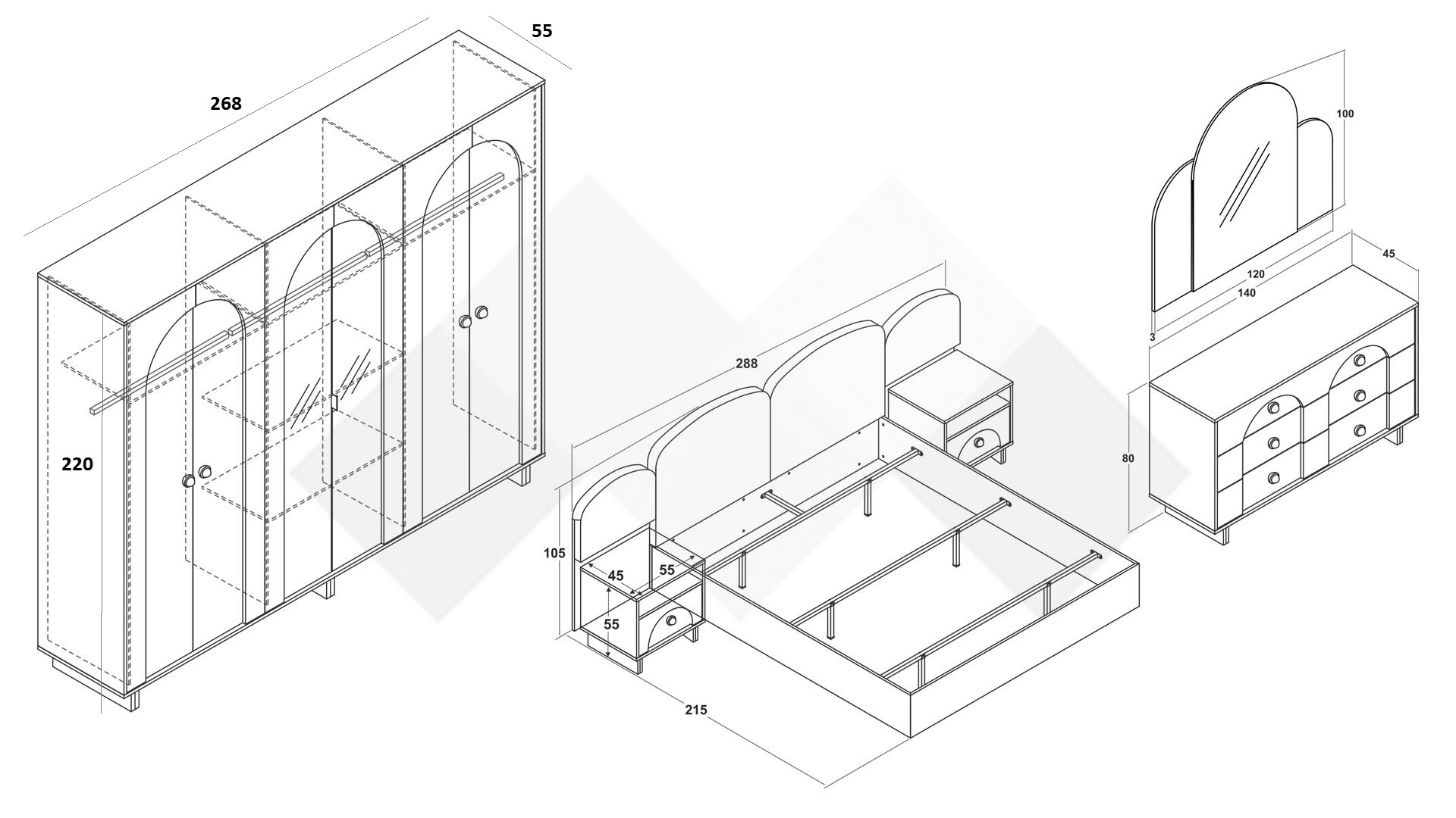 Конструкцията на Спалният комплект е изработена от висококачествено 18 мм, гарантиращо здравина и дългогодишна експлоатация.