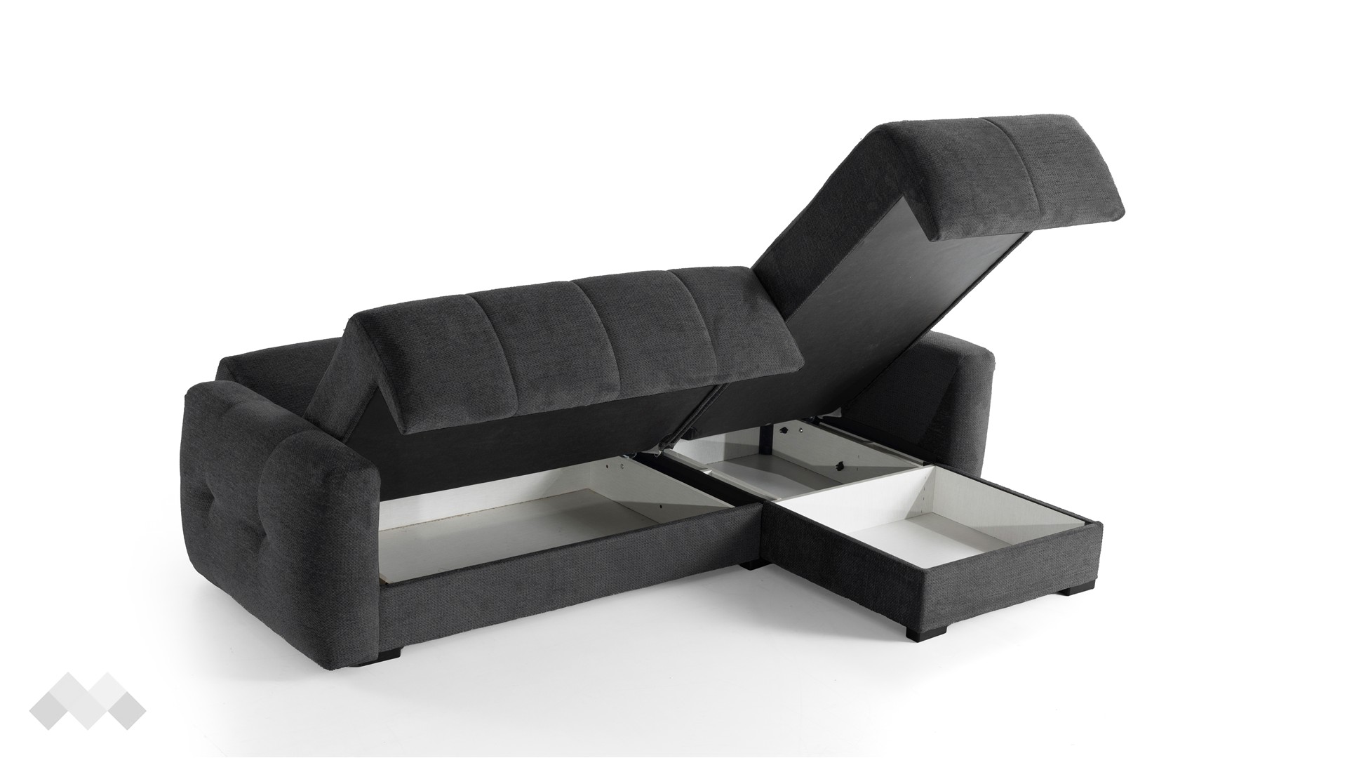 Клик-клак механизмът позволява бързо и удобно разгъване до легло с размер за сън 205/120 см. Това прави дивана подходящ както за всекидневна употреба, така и за гости. Под седалната част и под лежанката ще откриеш още един практичен плюс – удобни ракли, в които можеш да съхраняваш завивки, възглавници и други вещи. Дамаската е приятна на допир, изработена от здрав и устойчив текстил.