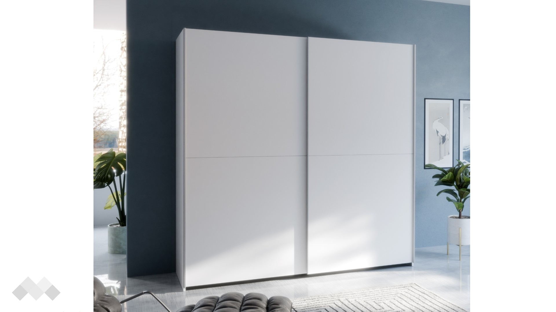 Плъзгащите врати правят гардероба идеален за помещения, в които пространството е ограничено. Те се движат плавно и лесно, като осигуряват удобен достъп до вътрешното разпределение.