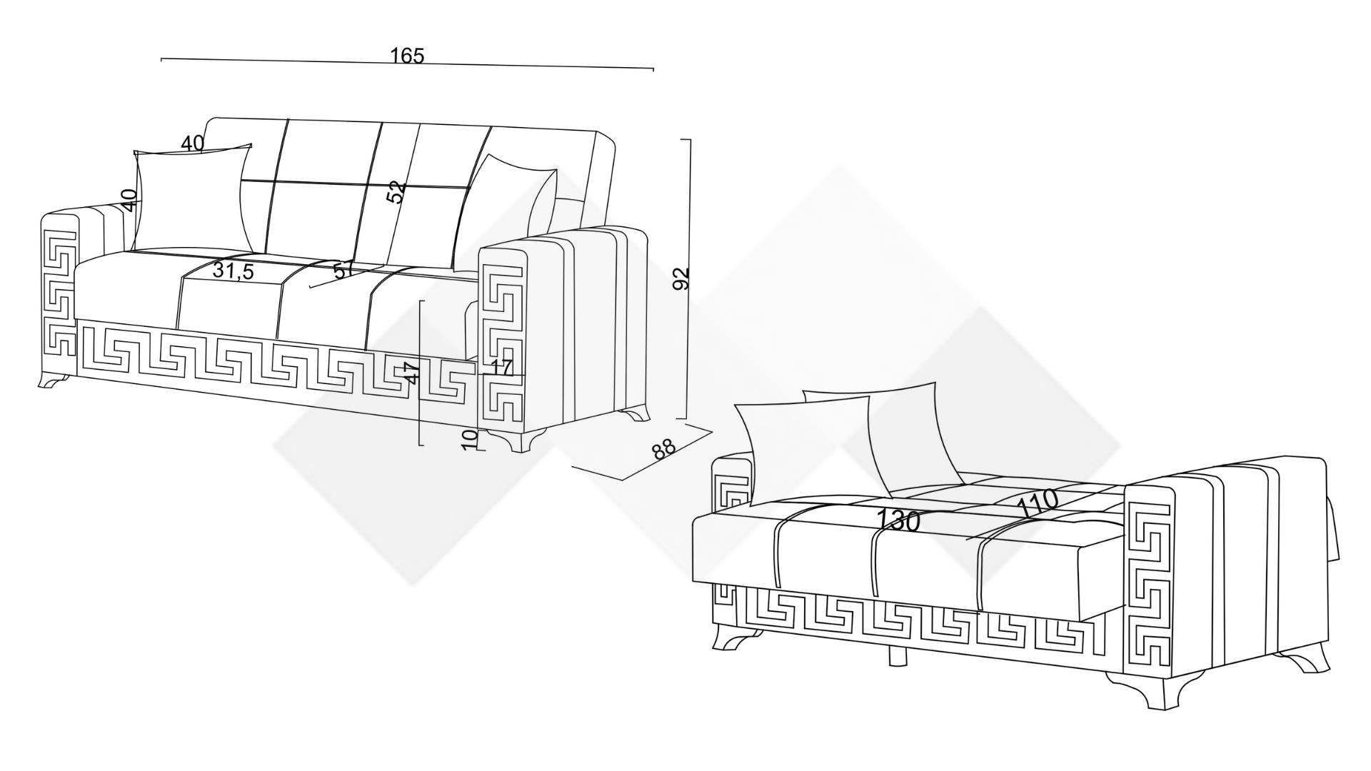 Диван Сабина е и функционален - благодарение на клик-клак механизма ще разполагаш с повече пространство за релакс - 130/110 см, а под седалката се крие удобна ракла, където да съхраняваш завивки, възглавници и други вещи.