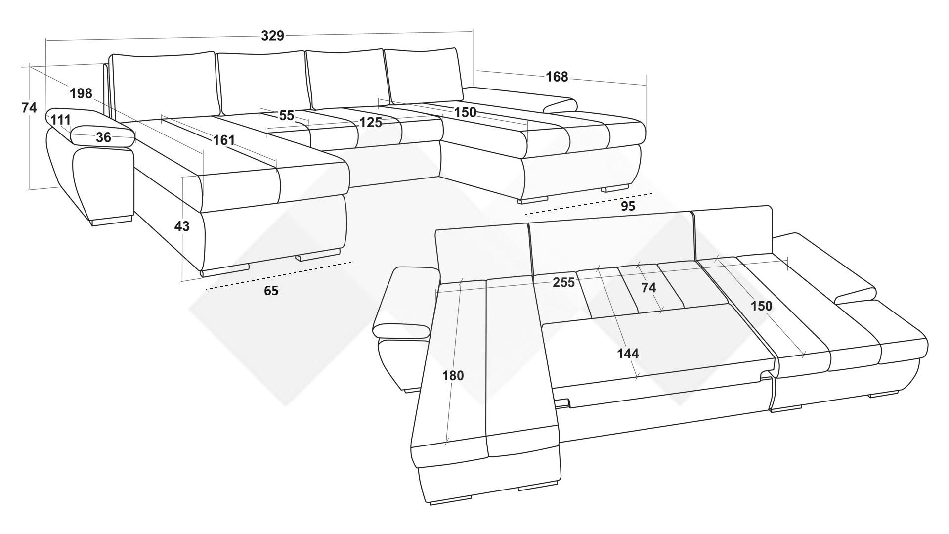 ❗ Показани продукт: П-образен диван Савона - ляв.