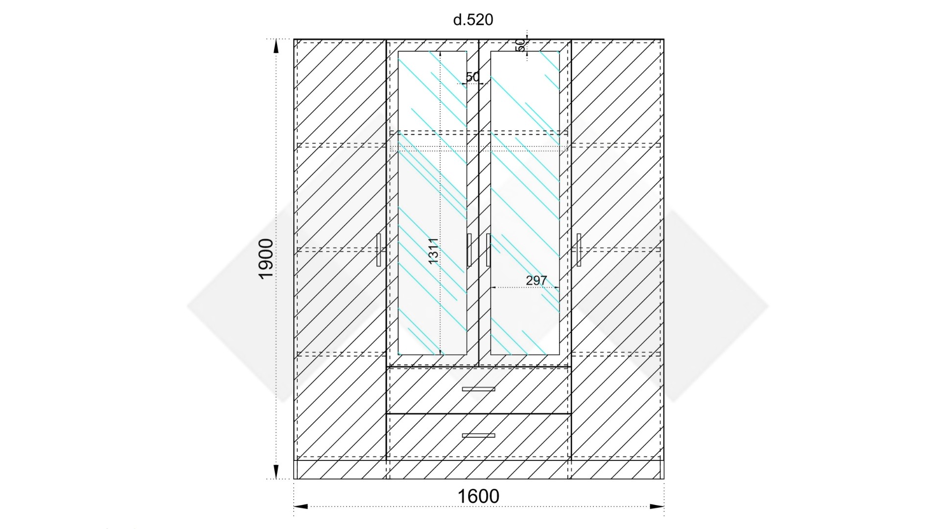 ✓ четирикрилен ✓ 2 чекмеджета ✓ 7 рафта ✓ лост за закачалки ✓ 2 огледала ✓ модерен декор ✓ практично разпределение ✓ качествена изработка