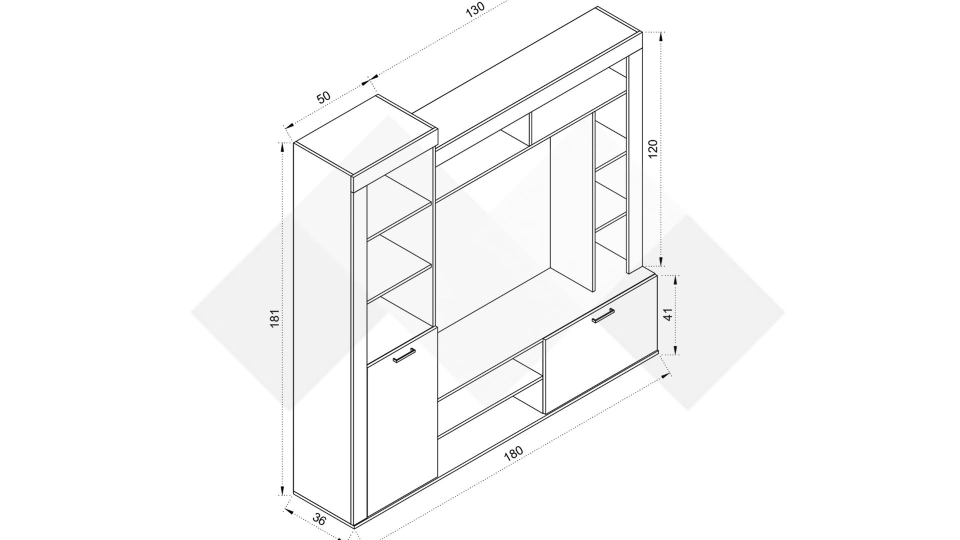 ⭐ Предимства: ✓ модерен дизайн ✓ ТВ шкаф ✓ висок шкаф ✓ етажерка ✓ отворени рафтове ✓ качествена изработка ✓ 16 мм ПДЧ