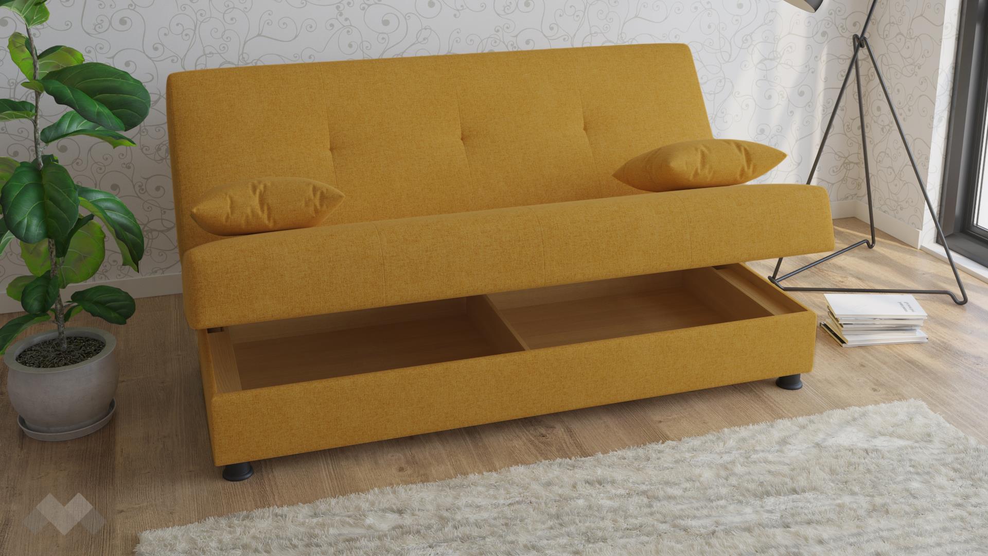 А за да е още по-практично, под цялата седалищна част се намира ракла, в която да прибереш възглавници, завивки и всякакви други вещи.