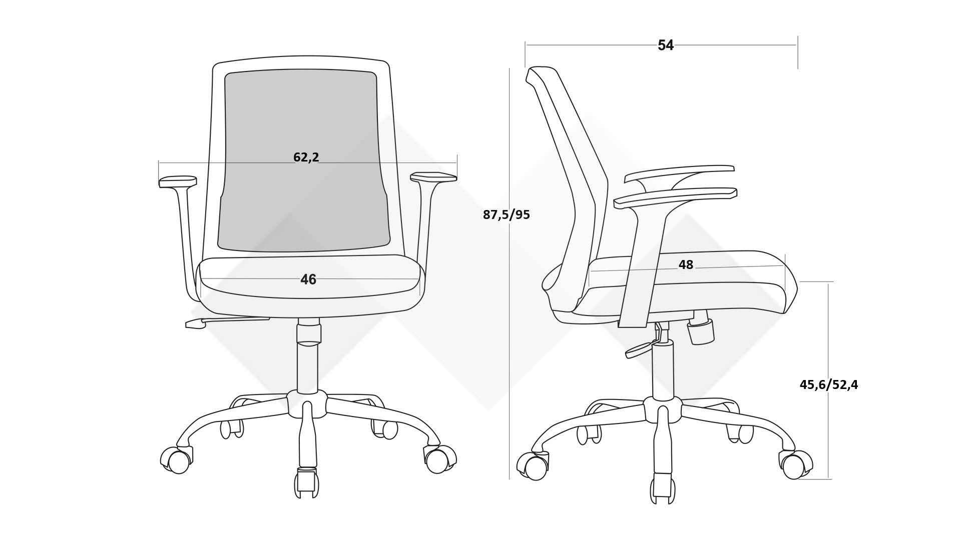 Д: 54 см. Ш: 62,2 см. В: 95 см.