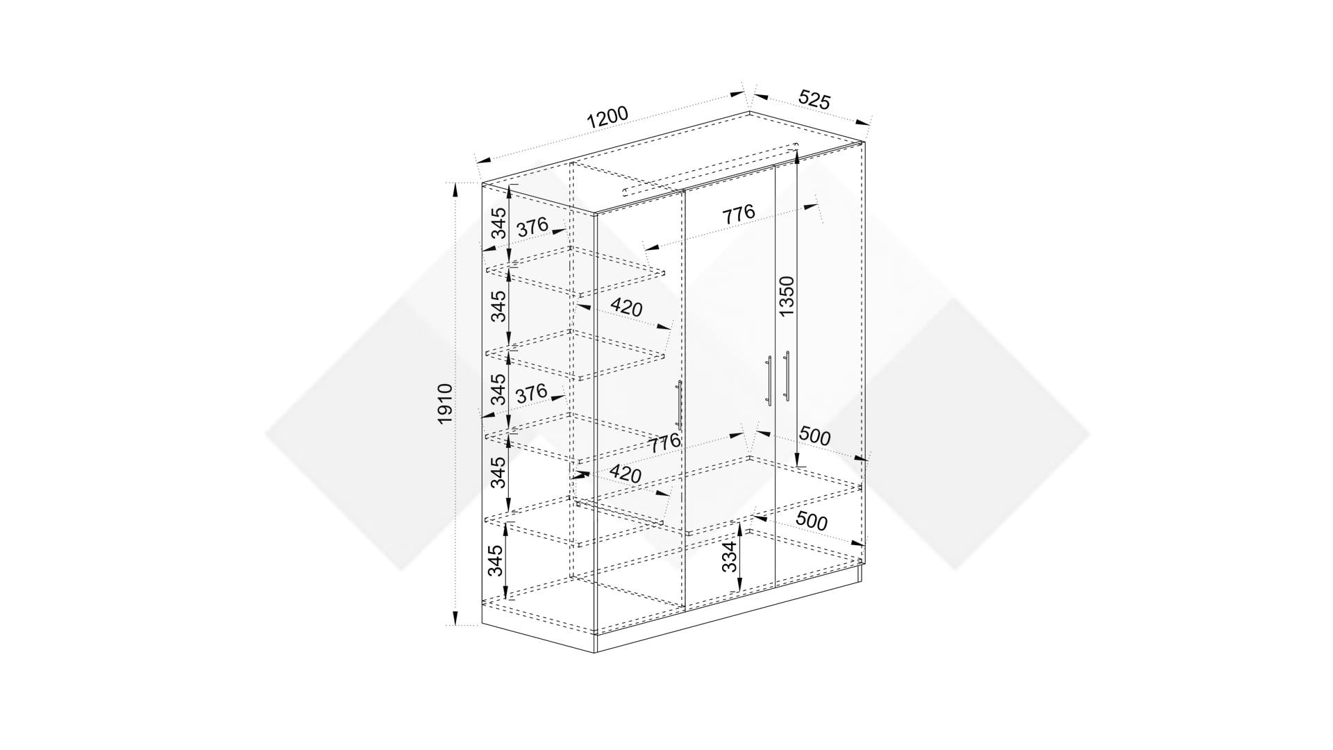 ✓ трикрилен ✓ 5 рафта ✓ лост за закачалки ✓ механизъм за плавно затваряне ✓ модерен декор ✓ практично разпределение ✓ качествена изработка ✓ 16 мм ПДЧ