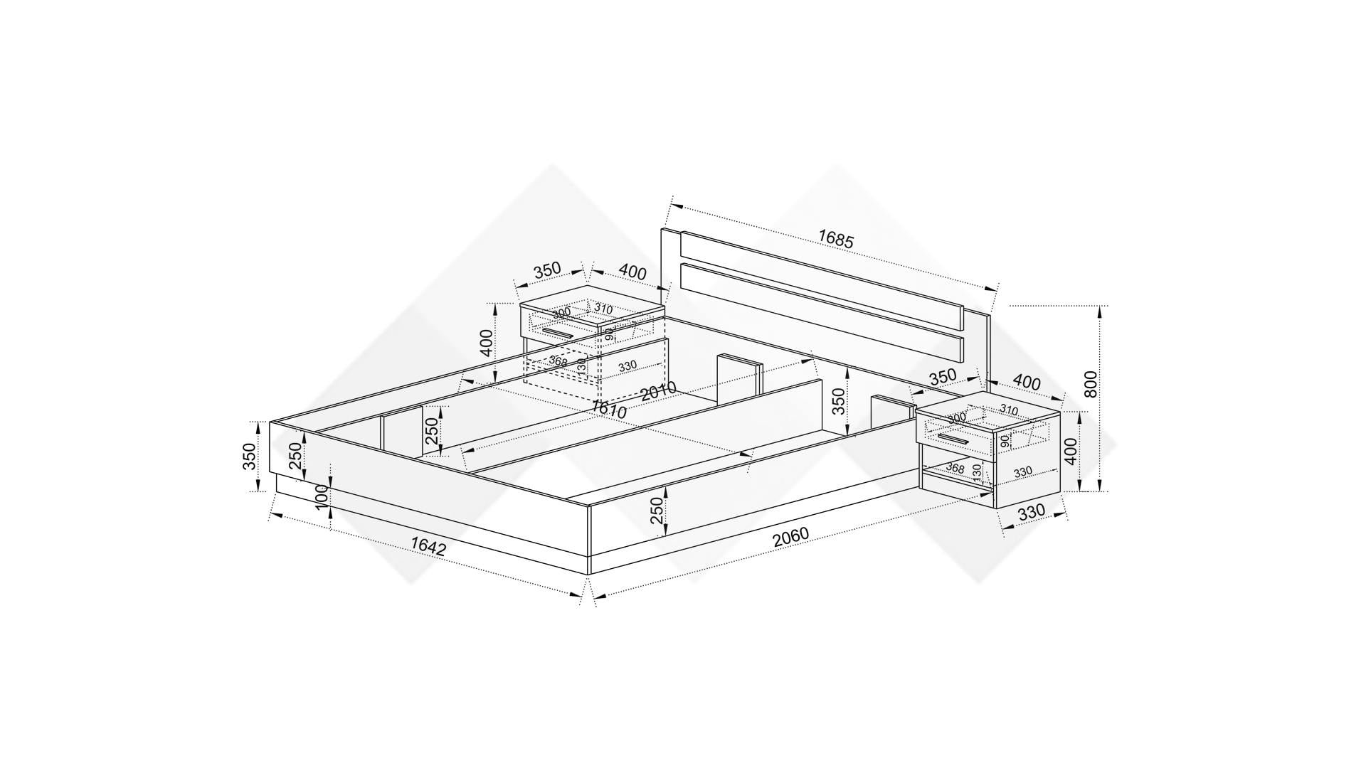 Спалня: Д: 168.5 см Ш: 206 см В: 80 см