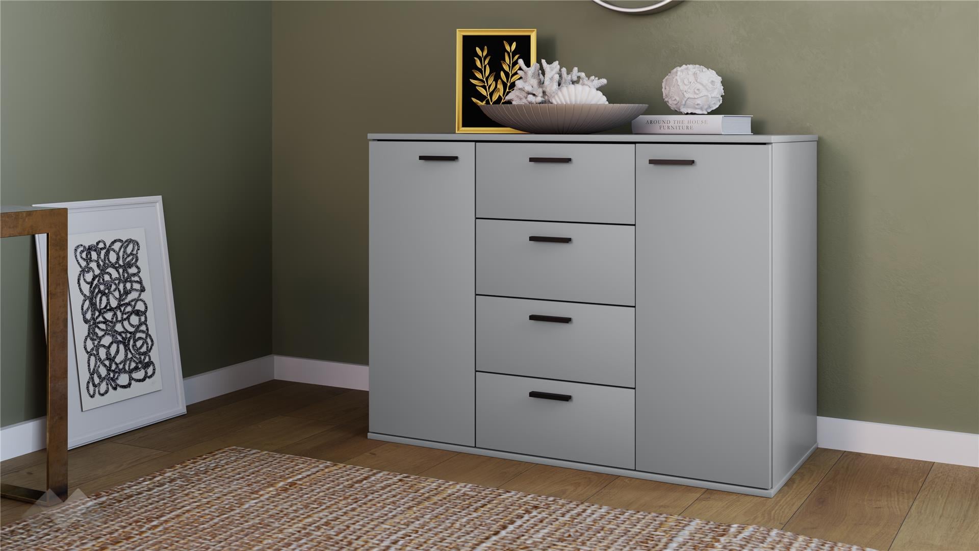 ✓ модерен декор ✓ 4 чекмеджета ✓ 2 шкафа ✓механизъм за плавно затварне ✓ 16 мм ПДЧ ✓ практично разпределение ✓ качествена изработка