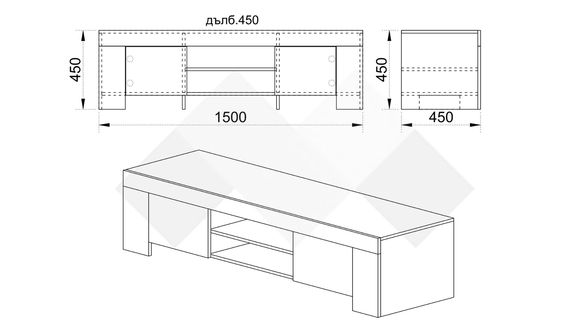ТВ шкаф Софи е изработен от висококачествено ПДЧ и МДФ с дебелина 16 мм.