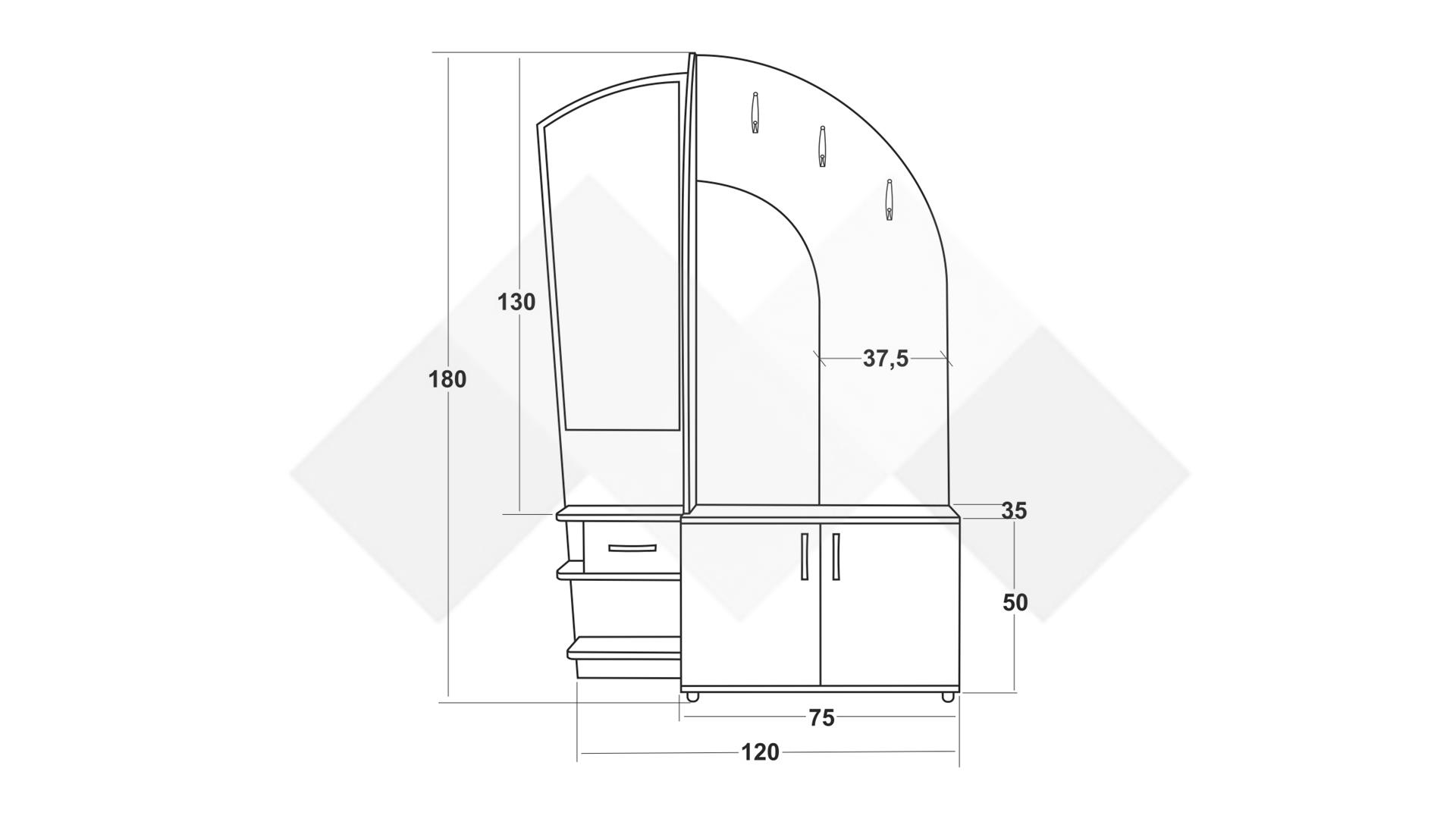 Портманто Спенсър разполага с шкаф с две вратички, зад които ще откриеш удобен рафт. Там можеш да организираш всичките си обувки. Плотът над шкафа автоматично се превръща в място за твоите чанти, шапки или други аксесоари. Практичното чекмедже е удобно за ключове, поща и други дребни неща, които е важно да са прибрани на сигурно място. Горният плот може да ти послужи като място за стилни декорации или козметика. На открития рафт под чекмеджето може да поставиш вещите, които би искал винаги да са ти под ръка в забързаното ежедневие. Това, което ще ти допадне най-много, е огледалото, благодарение на което да хвърлиш бърз поглед на тоалета си и да изпипаш всеки детайл преди да излезеш. На паното са монтирани три закачалки за якета, палта, шалове или шапки.