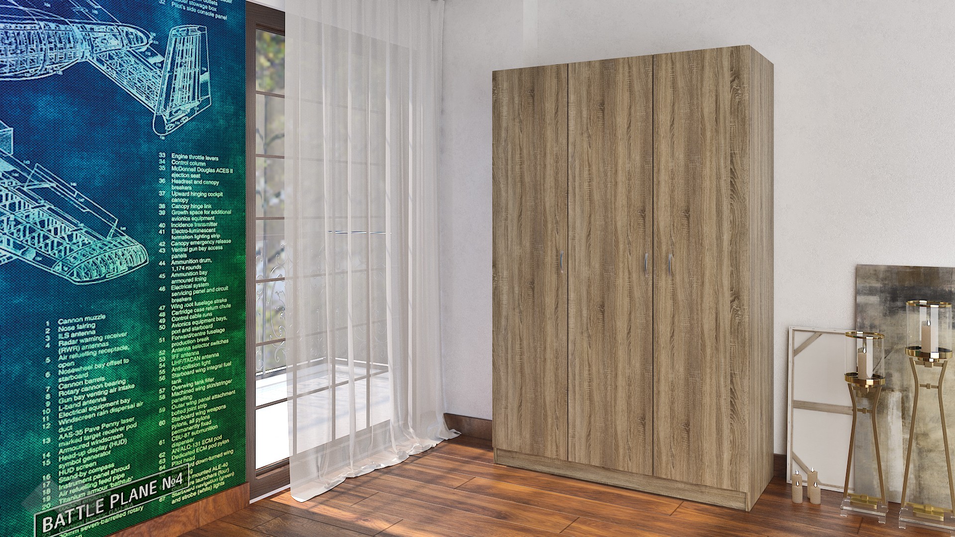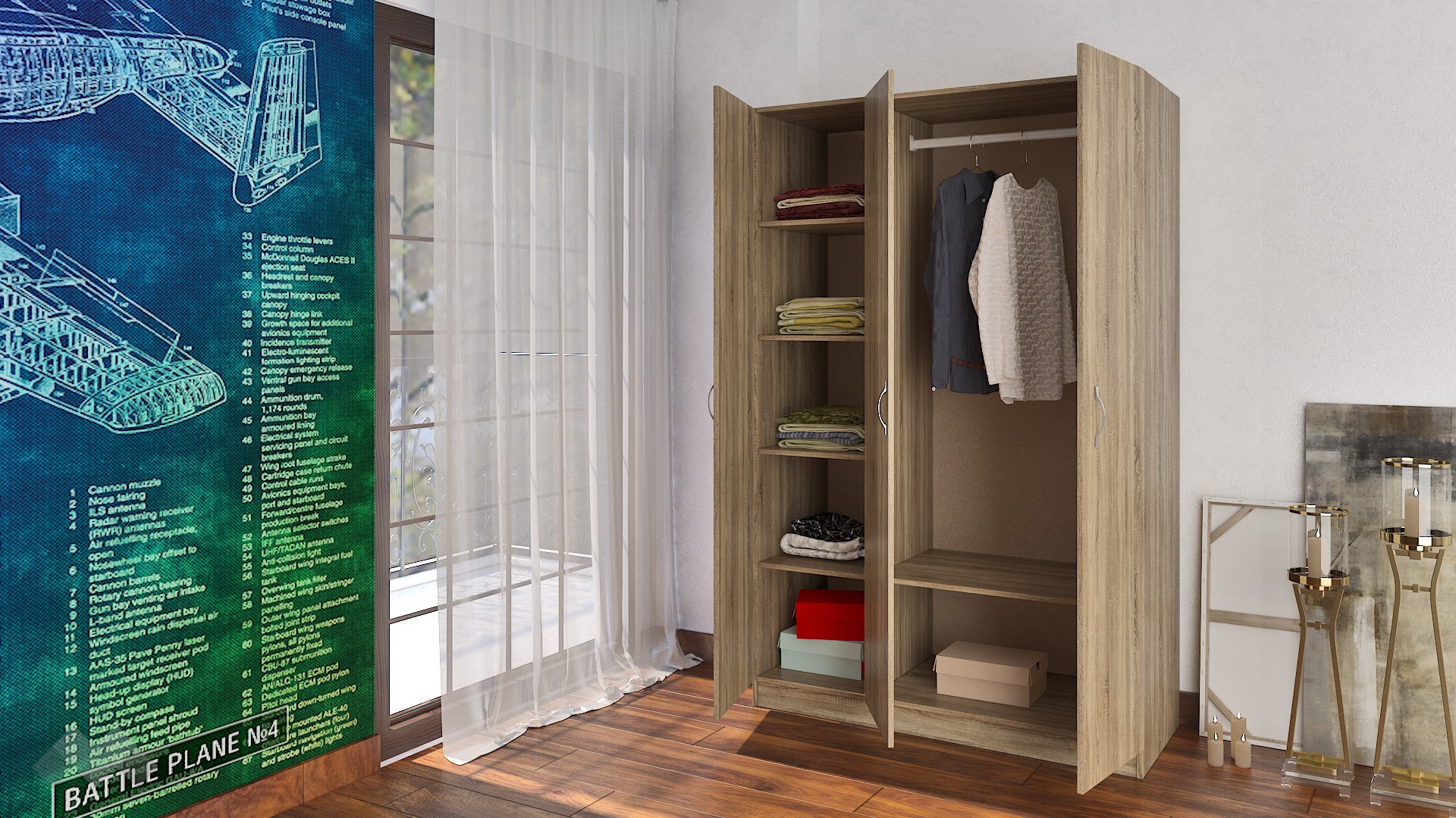 ⭐ Предимства: ✓ трикрилен ✓ 5 рафта ✓ лост за закачалки ✓ модерен декор ✓ практично разпределение ✓ качествена изработка ✓ 16 мм ПДЧ