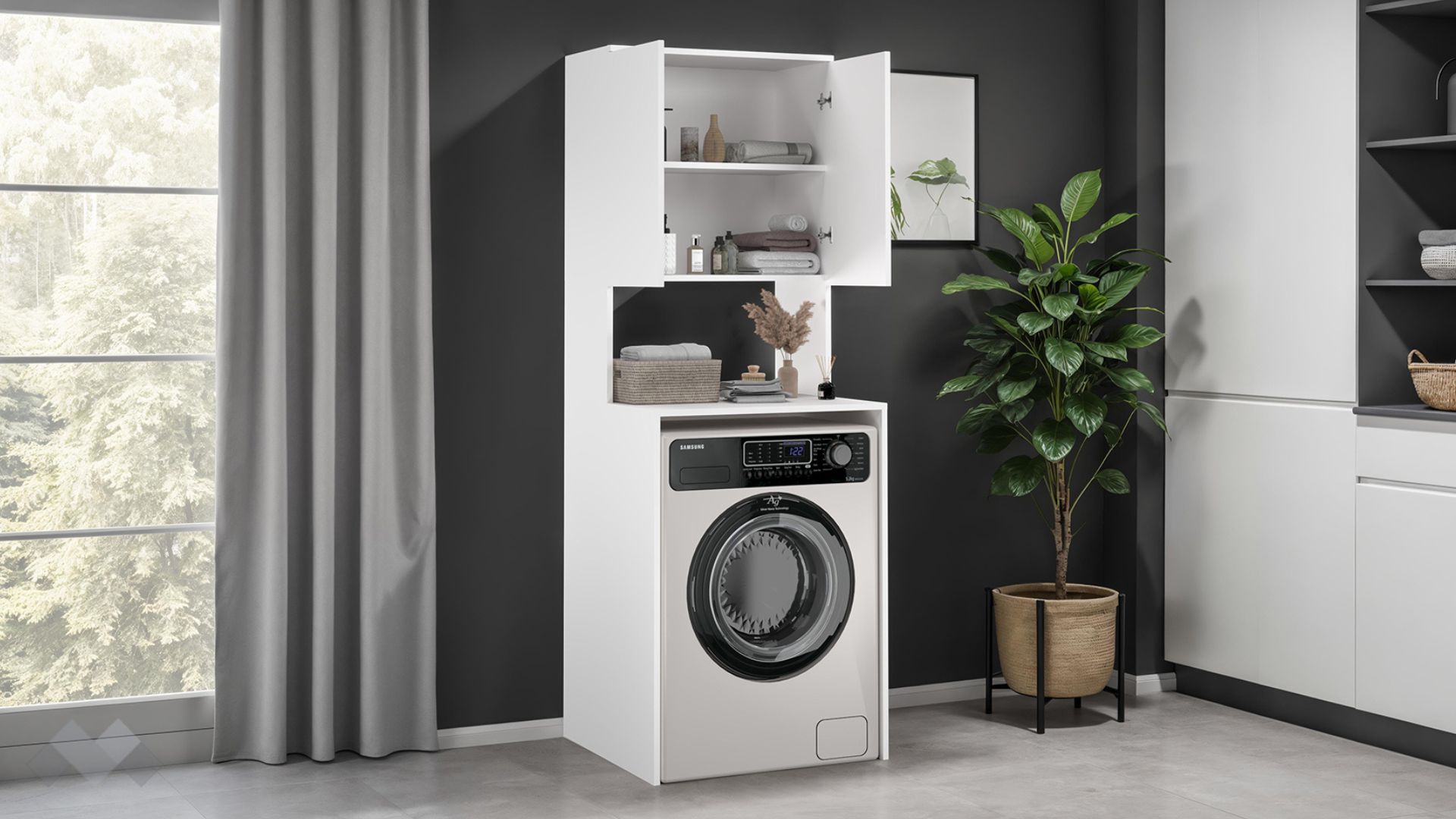 Конструкцията на шкаф за пералня Андре е изработена от висококачествено 16 мм ПДЧ.