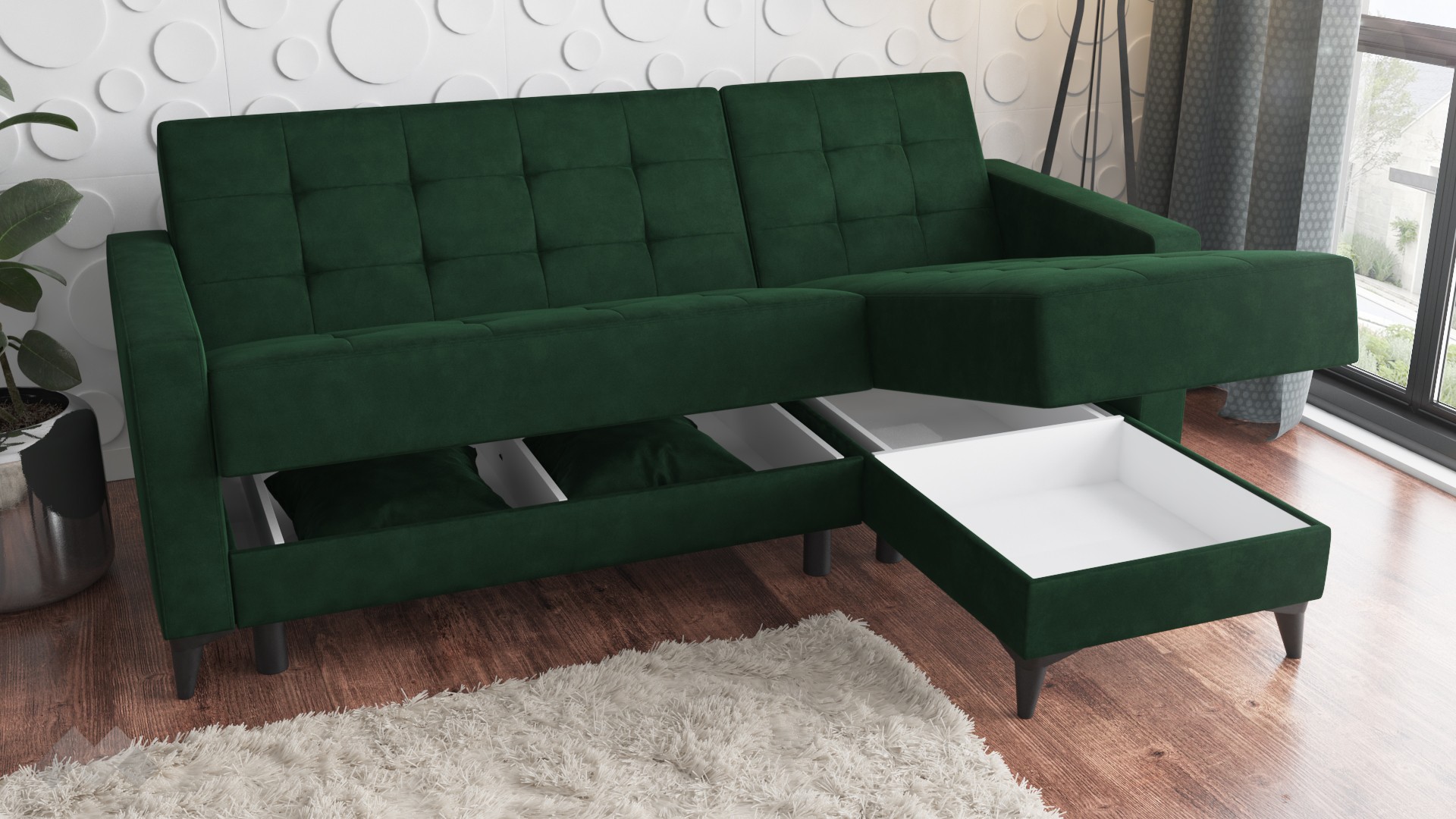 Ъглов диванАмалиязелен универсален ъгъл: на високи крака
