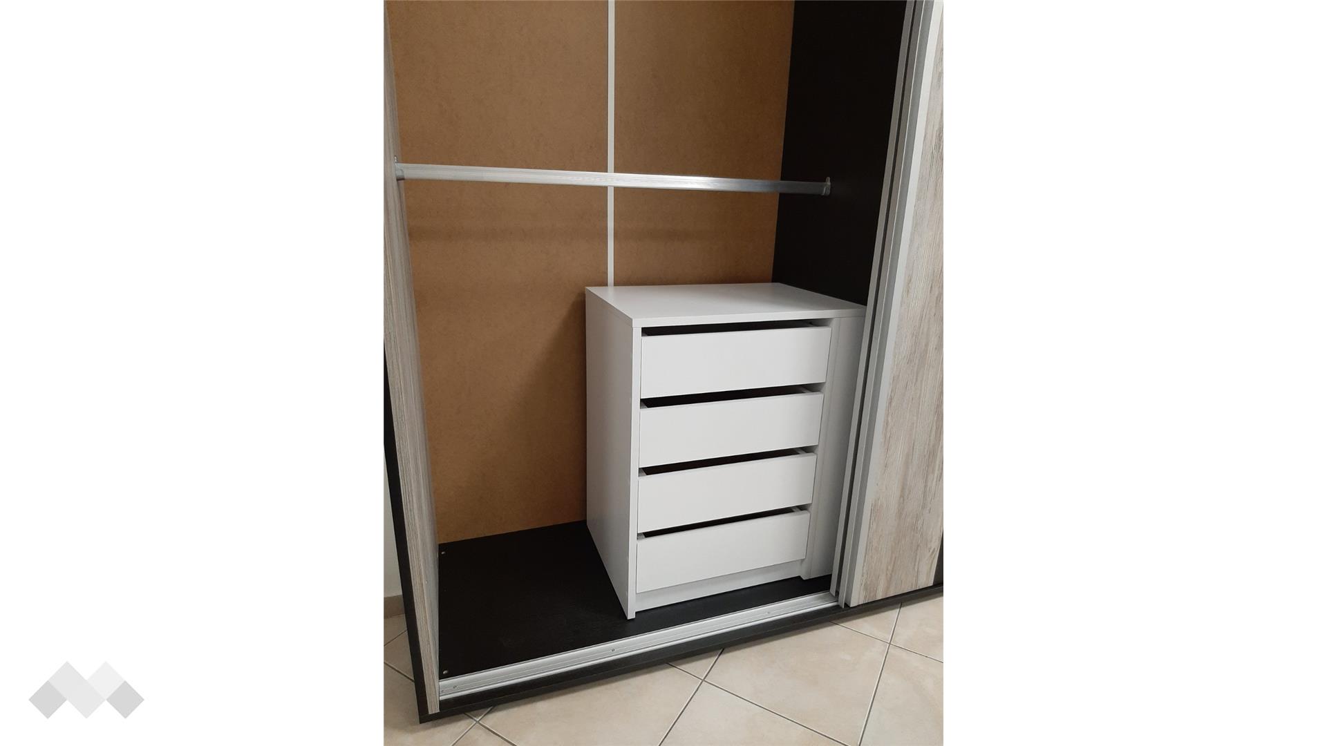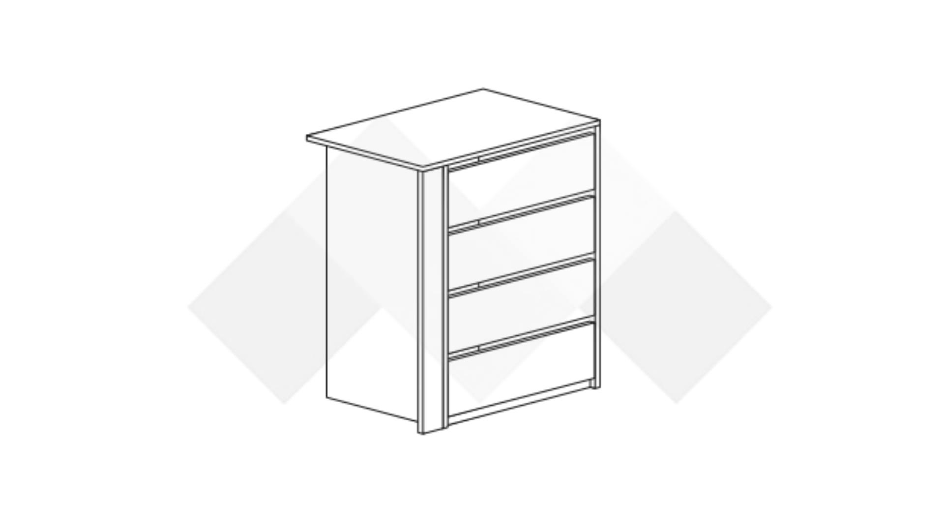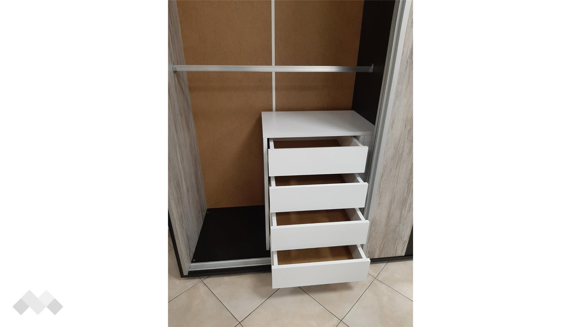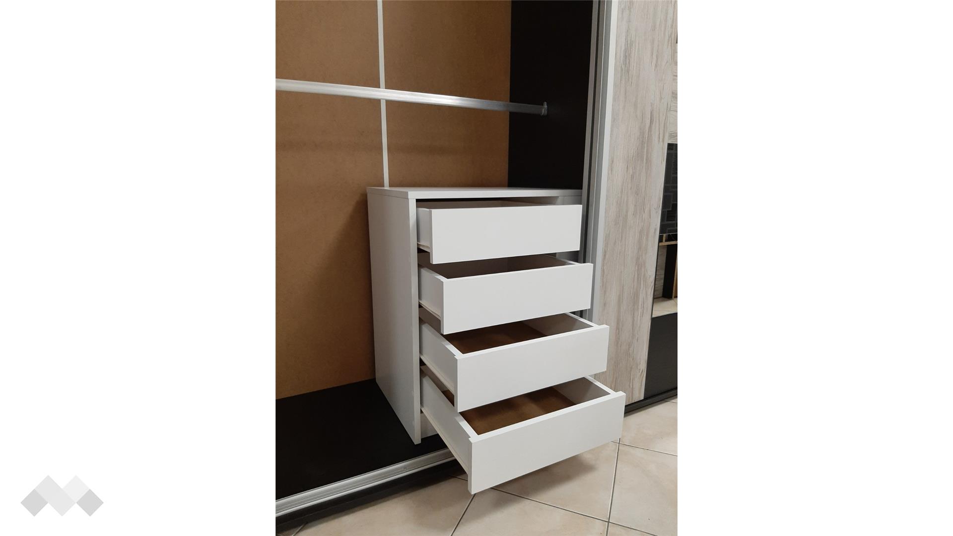 Ако искаш допълнително място за съхранение и организация в гардероба си или той не разполага с достатъчно рафтове, скрин за гардероб Уни е точното решение на този проблем. Разполага с четири чекмеджета, в които може да организираш дрехите си, бельо, чорапи или други аксесоари. Възможен е монтаж отляво или отдясно в гардероба.