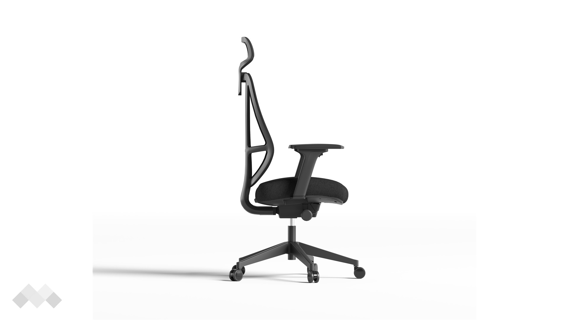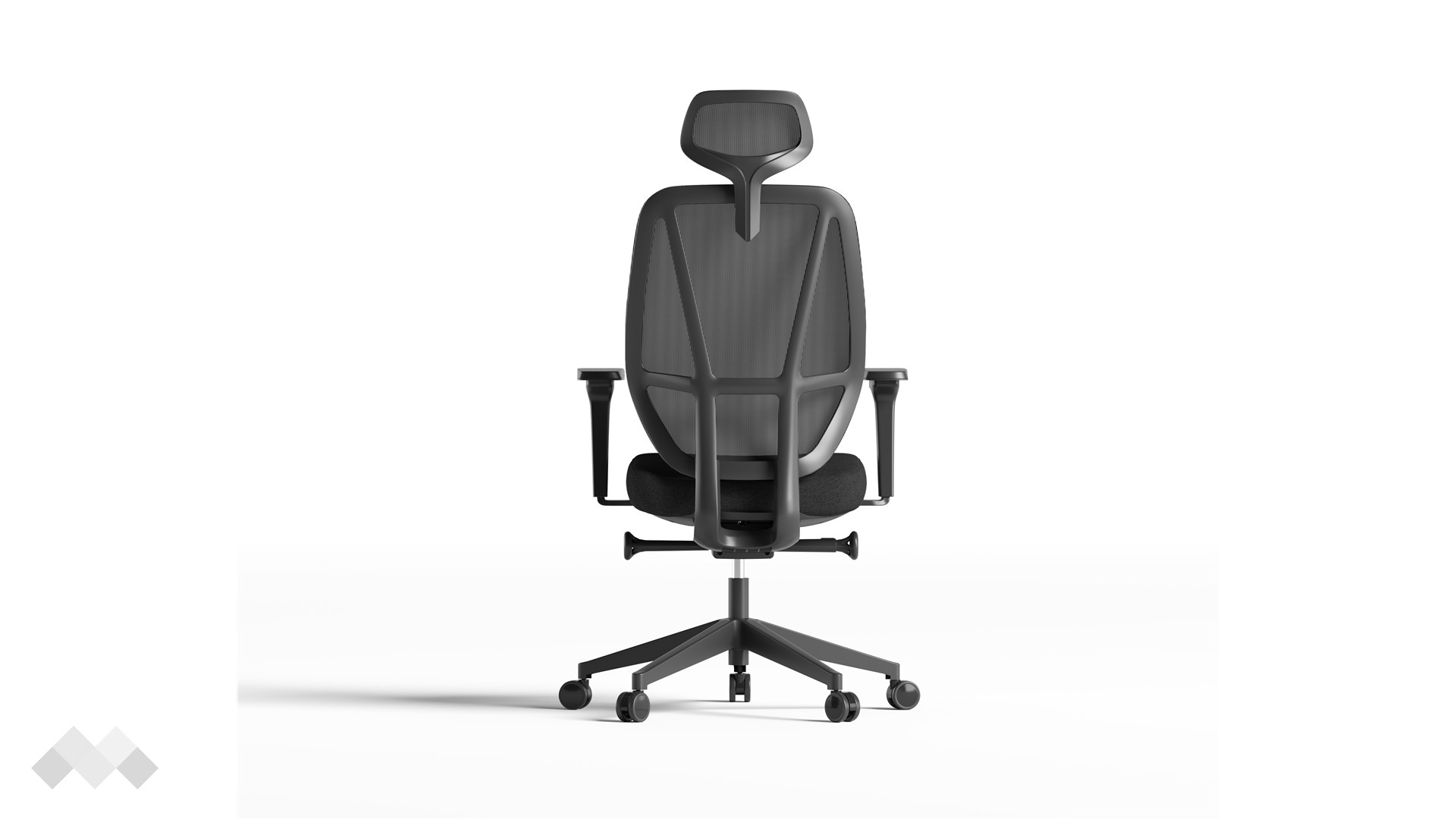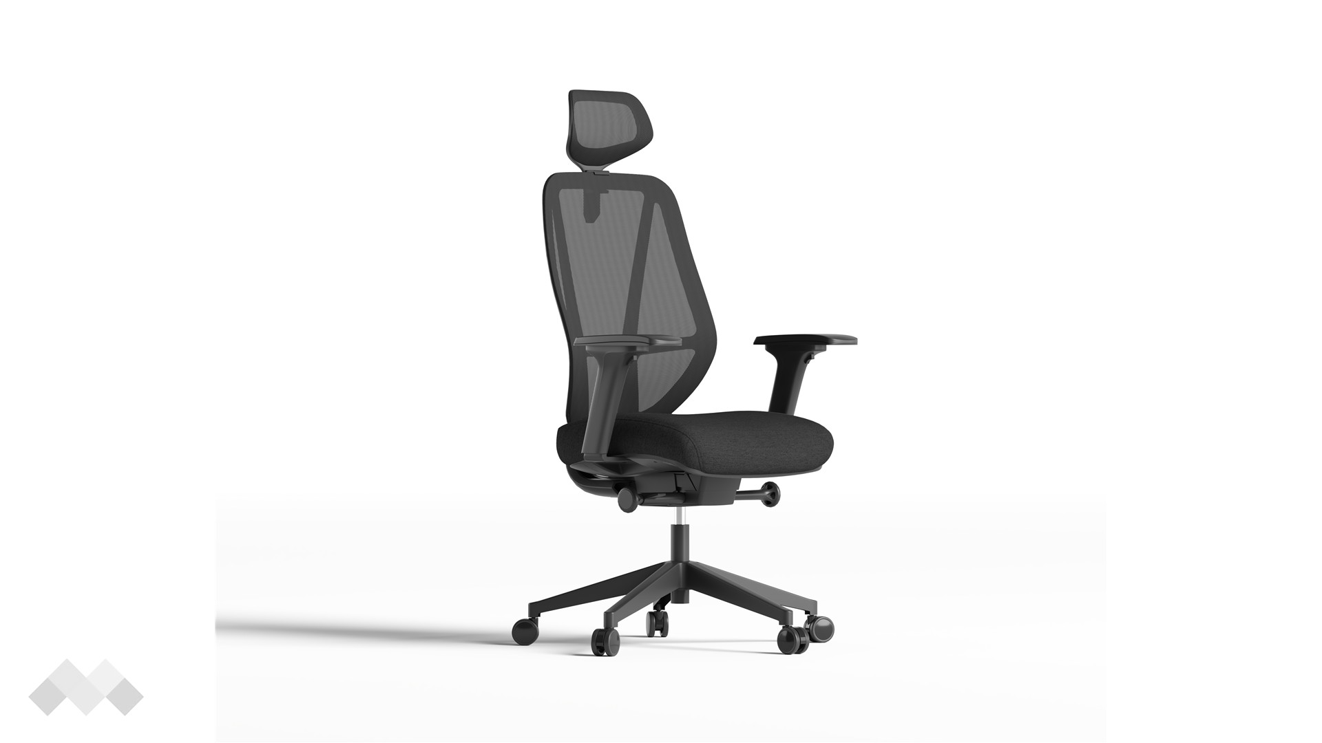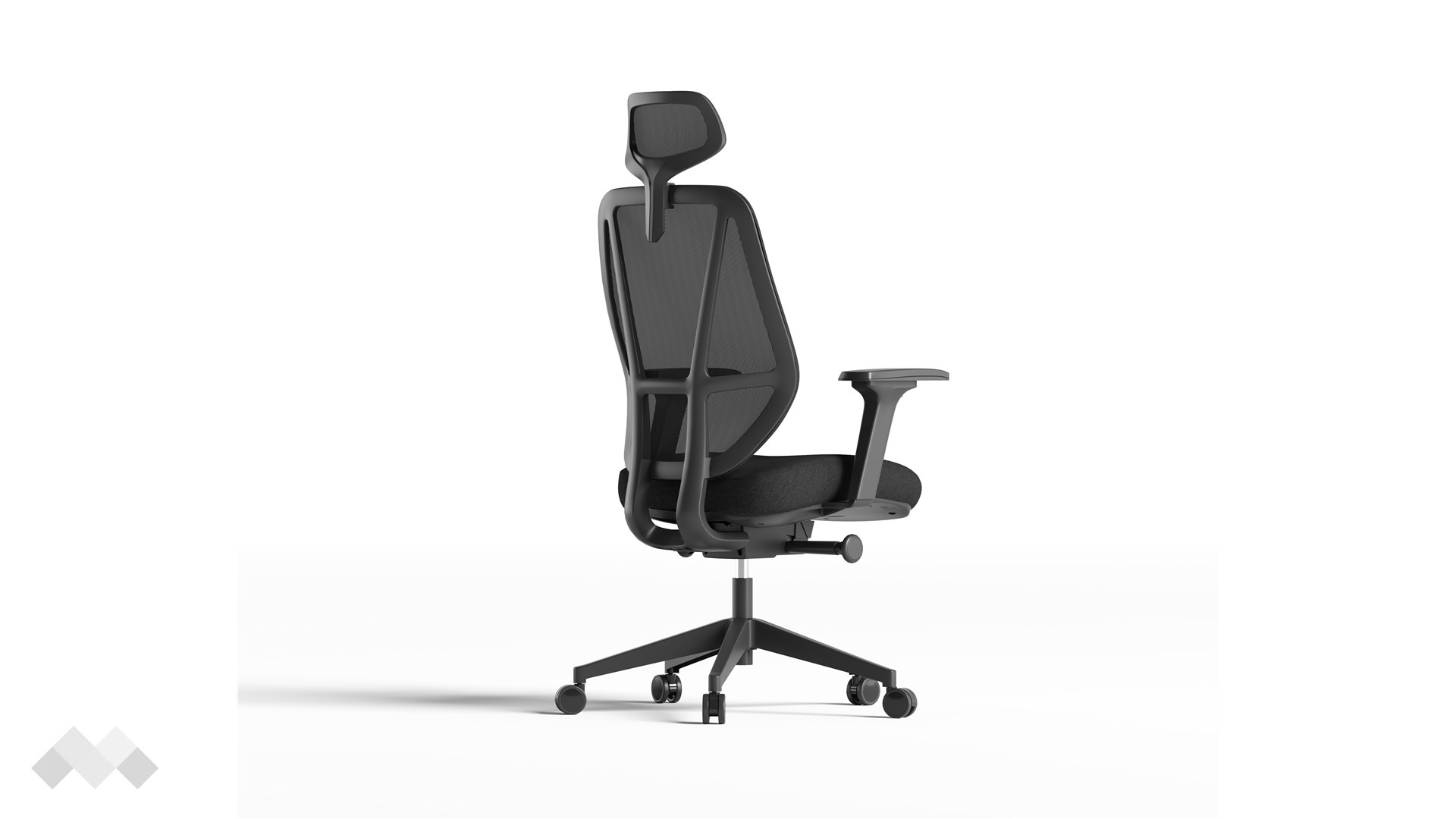 Високата мрежеста облегалка осигурява отлична проветривост, поддържайки тялото свежо през целия работен ден, а текстилната седалка с формована пяна и здрава пластмасова основа предлага стабилна и удобна опора.