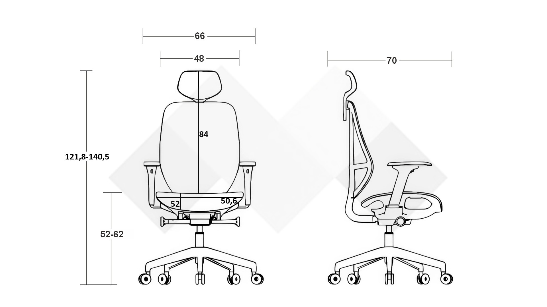 Д: 70 см. Ш: 66 см. В: 140,5 см.