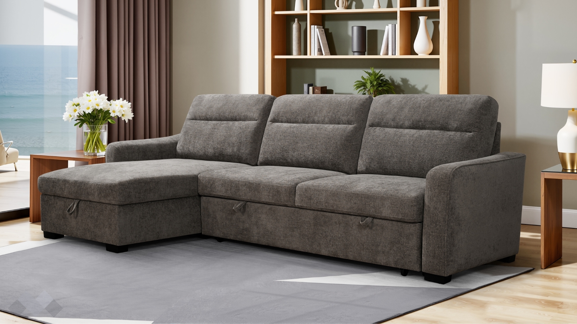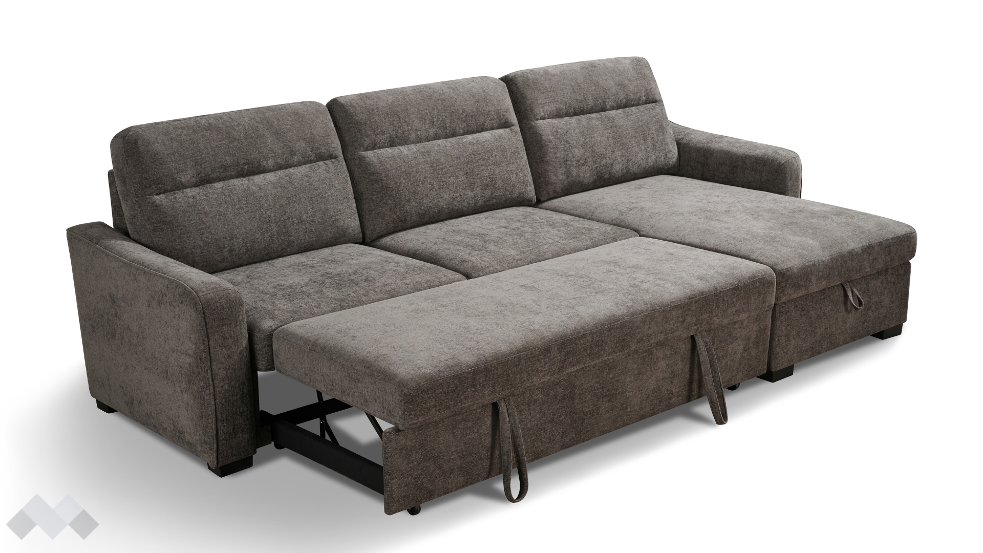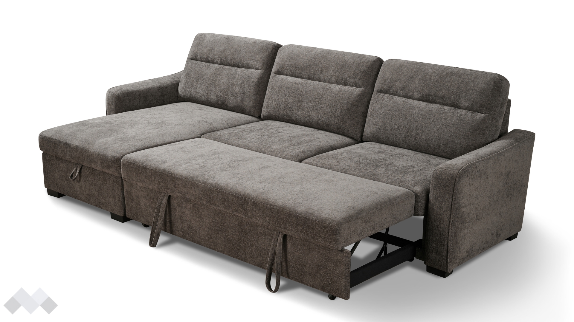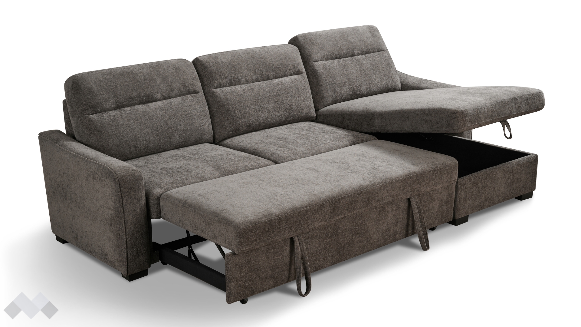 С помощта на подматрачен механизъм диванът се разгъва бързо и без усилие в удобно легло с площ за сън 259/120 см. Само с едно движение можеш да го трансформираш според нуждите си - идеално решение както за ежедневна почивка, така и за гости. Под лежанката е разположена практична ракла, която ти помага да съхраняваш завивки и възглавници и да поддържаш пространството подредено. Облегалните възглавници са със сваляеми калъфи, за да ги поддържаш чисти и свежи.