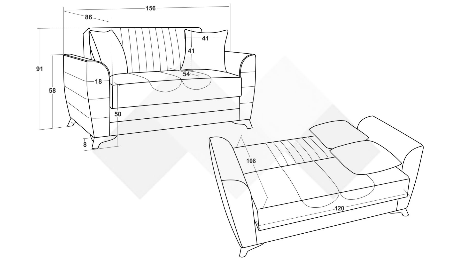 Диванът има здрава конструкция от масивна дървесина и ПДЧ, отличаващи се с устойчивост за дълъг период на употреба. Моделът се предлага в цветови комбинации, подходящи както за класически, така и за по-модерен интериор.