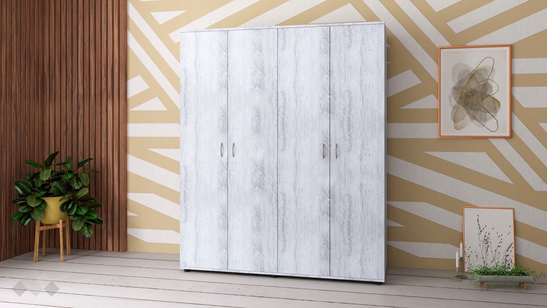 Гардероб №1 е четирикрилен, с 4 рафта и лост за закачалки. Има практично разпределение, което ще ти позволи да подредиш дрехите и аксесоарите си. Можеш да използваш рафтовете за съхранение на сгънати дрехи, а на лоста да закачиш всичко, което искаш да ти бъде под ръка. Височината и дълбочината на гардероба са оптимално проектирани, за да предоставят достатъчно пространство за съхранение, без да заемат прекалено много място в стаята. Четирикрилната конструкция улеснява достъпа до всички части на модела.