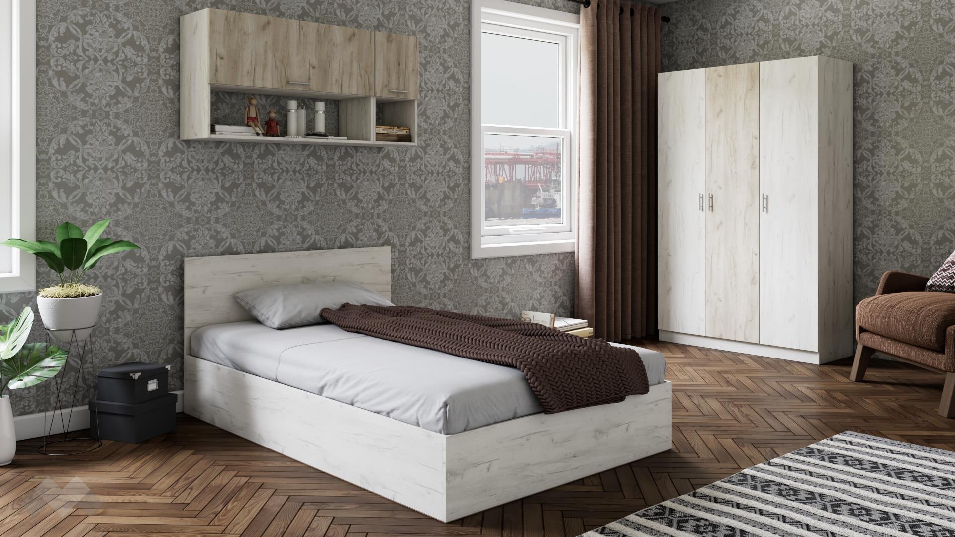 ⭐ Предимства: ✓ легло за матрак 120/190 ✓ повдигащ механизъм ✓ трикрилен гардероб ✓ 2 надстройки ✓ модерен дизайн ✓ качествена изработка ✓ 16 мм ПДЧ