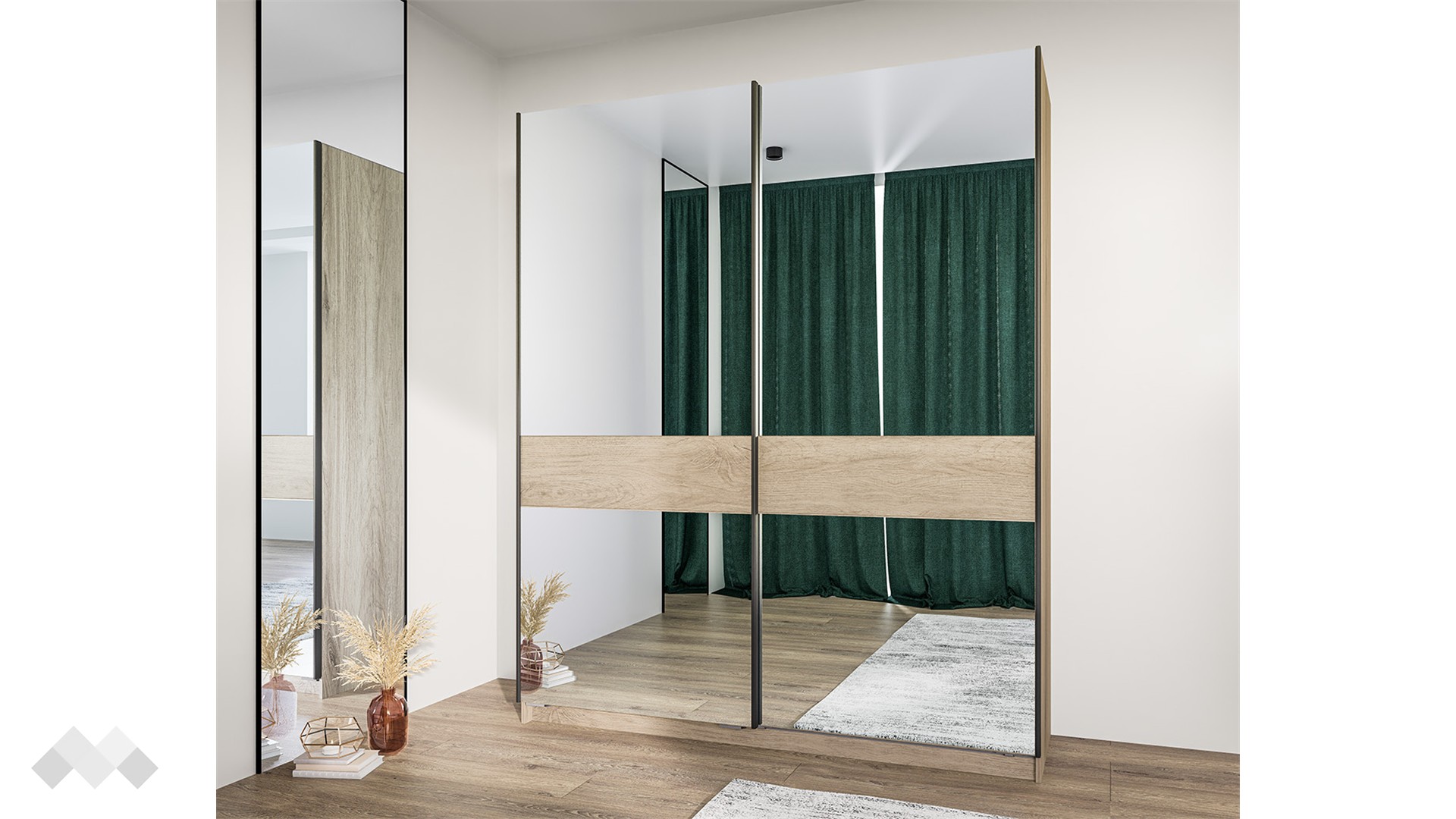 Ще ти допаднат и огледалата, разположени на вратите – те превръщат гардероба в незаменим помощник при избора на тоалет. Освен това, благодарение на тях, стаята ще бъде по-осветена и ще изглежда визуално по-голяма. Плъзгащите врати правят гардероба подходящ дори за най-малките спални, тъй като за отварянето им не се нуждаеш от допълнително пространство. В същото време дълбочината на гардероба позволява да съхраняваш вътре и по-обемни вещи.