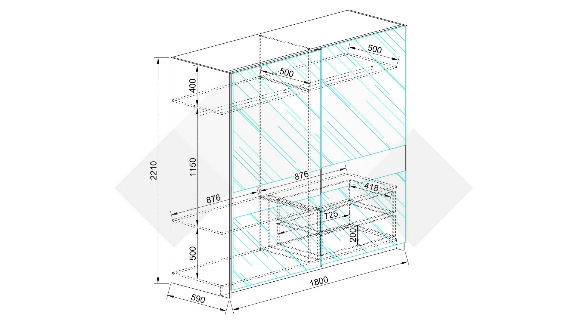 Гардеробът Аделаида е практично разпределен и изцяло отговаря на съвременните стандарти за съхранение на дрехи. На твое разположение са четири просторни рафта, на които можеш да подредиш сгънати дрехи, завивки, възглавници, аксесоари или други необходими за теб вещи. Не сме забравили и лоста за закачалки – тук са цели два, по един за всяко крило, на които можеш да закачиш палта, по-обемни връхни дрехи или елегантното облекло, което се мачка лесно. В тази мебел ще намериш и две вградени чекмеджета, които допринасят за функционалността му.