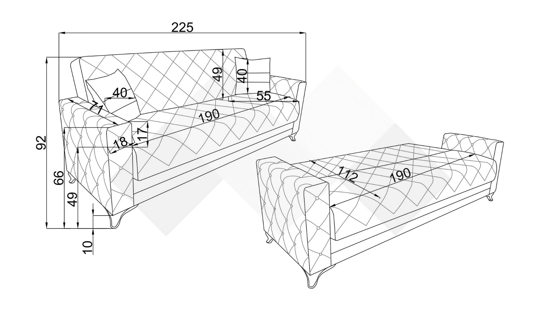 Диванът има здрава конструкция с бонел пружина, отличаваща се с устойчивост за дълъг период на употреба.