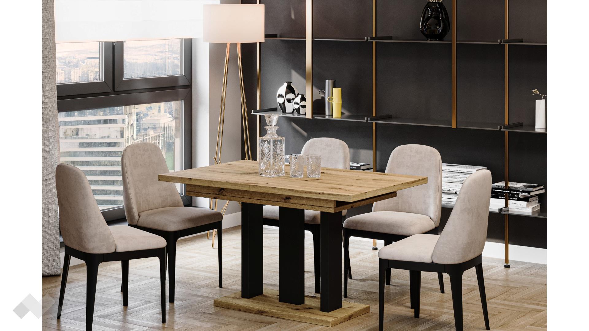 Трапезна маса Апия е стилно и практично решение за всяка трапезария. С компактния си размер в стандартно положение е идеална за ежедневна употреба, а при разтягане осигурява просторно място за посрещане на повече гости – перфектна за събирания и специални поводи.