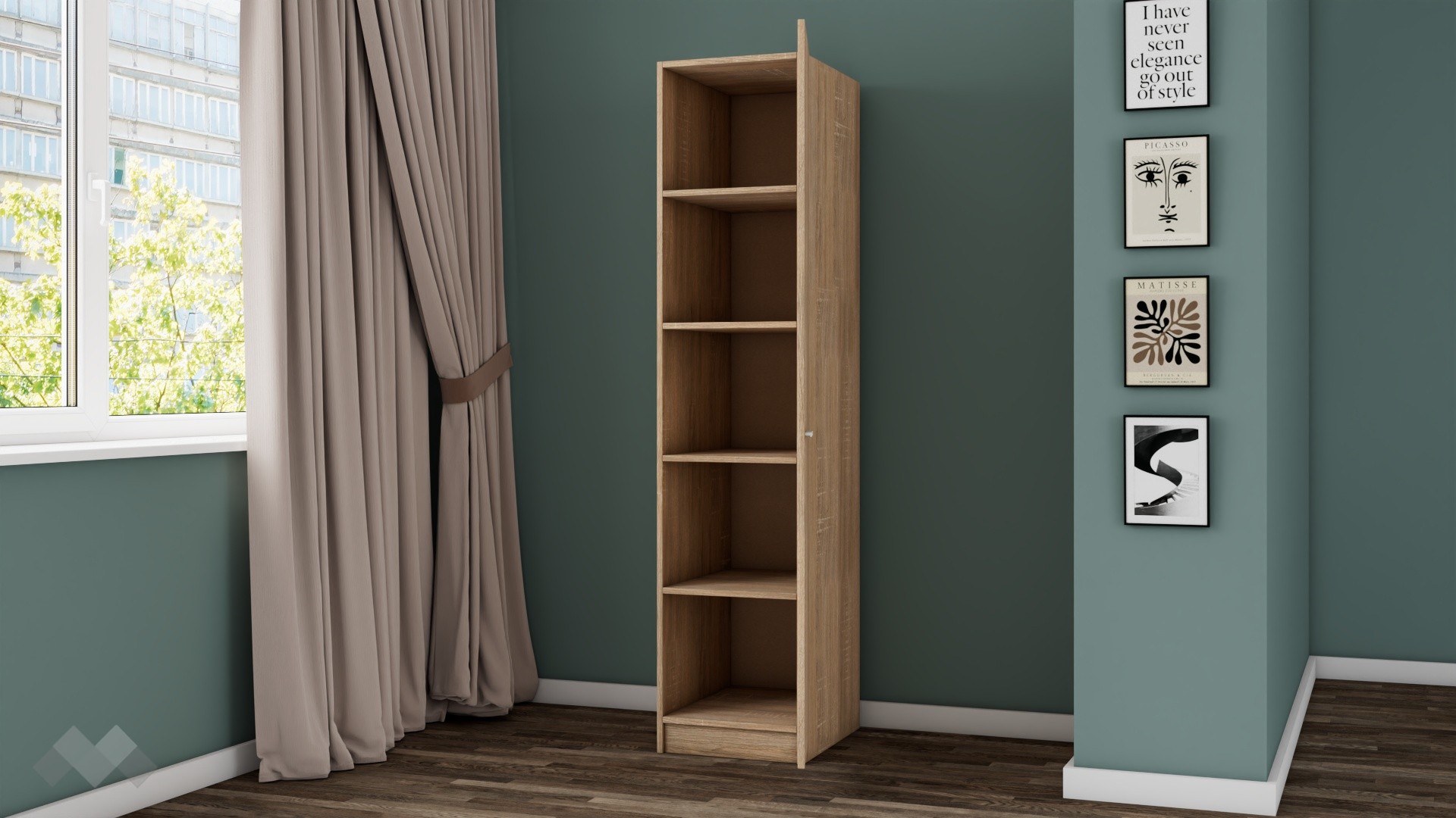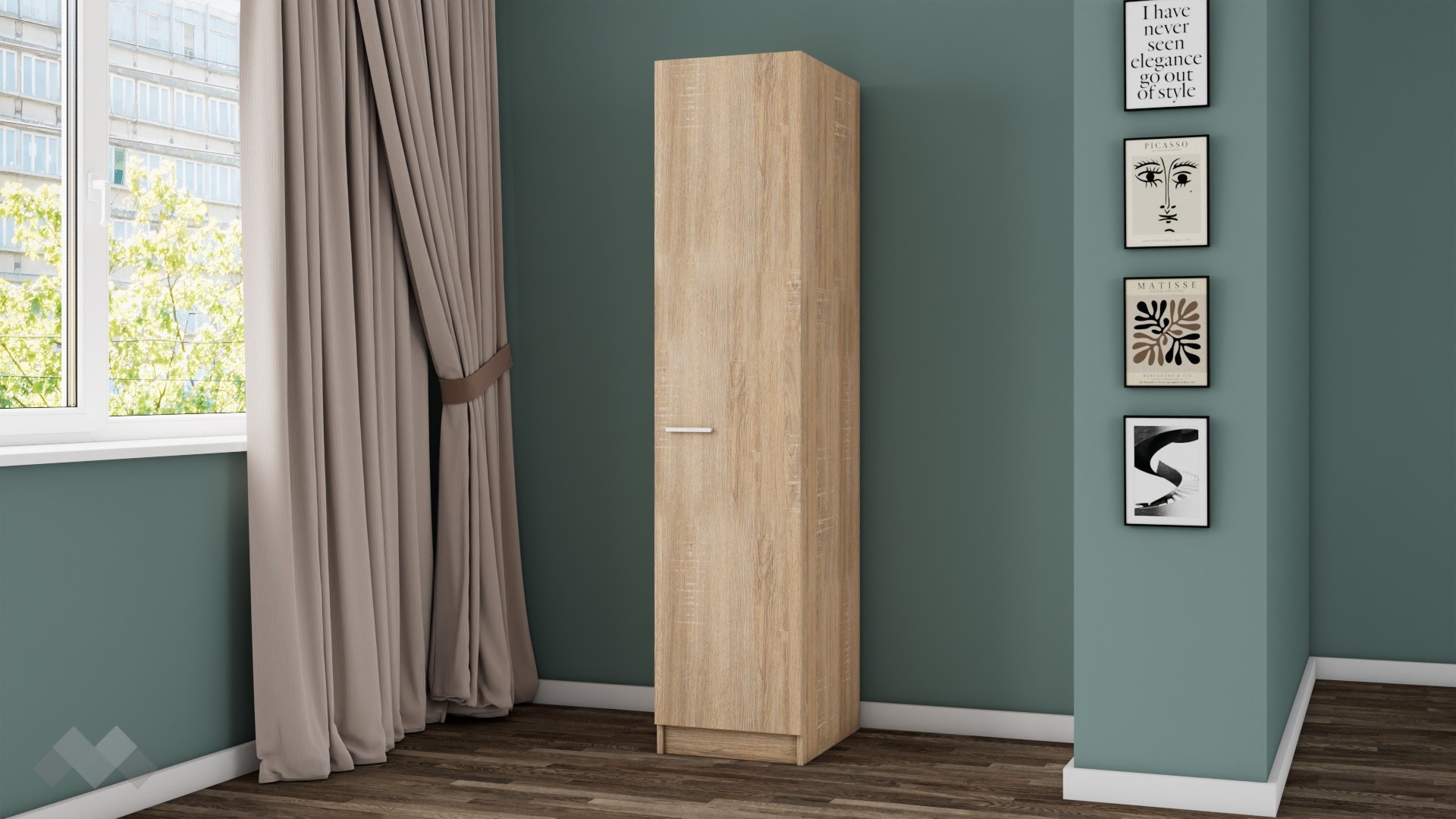 Еднокрилен гардероб Арго с рафтове е практично и стилно решение за организиране на дрехи и аксесоари в компактни пространства. С изчистения си и функционален дизайн, той е подходящ за различни стаи – антре, спалня или детска стая – и се вписва лесно във всеки интериор.