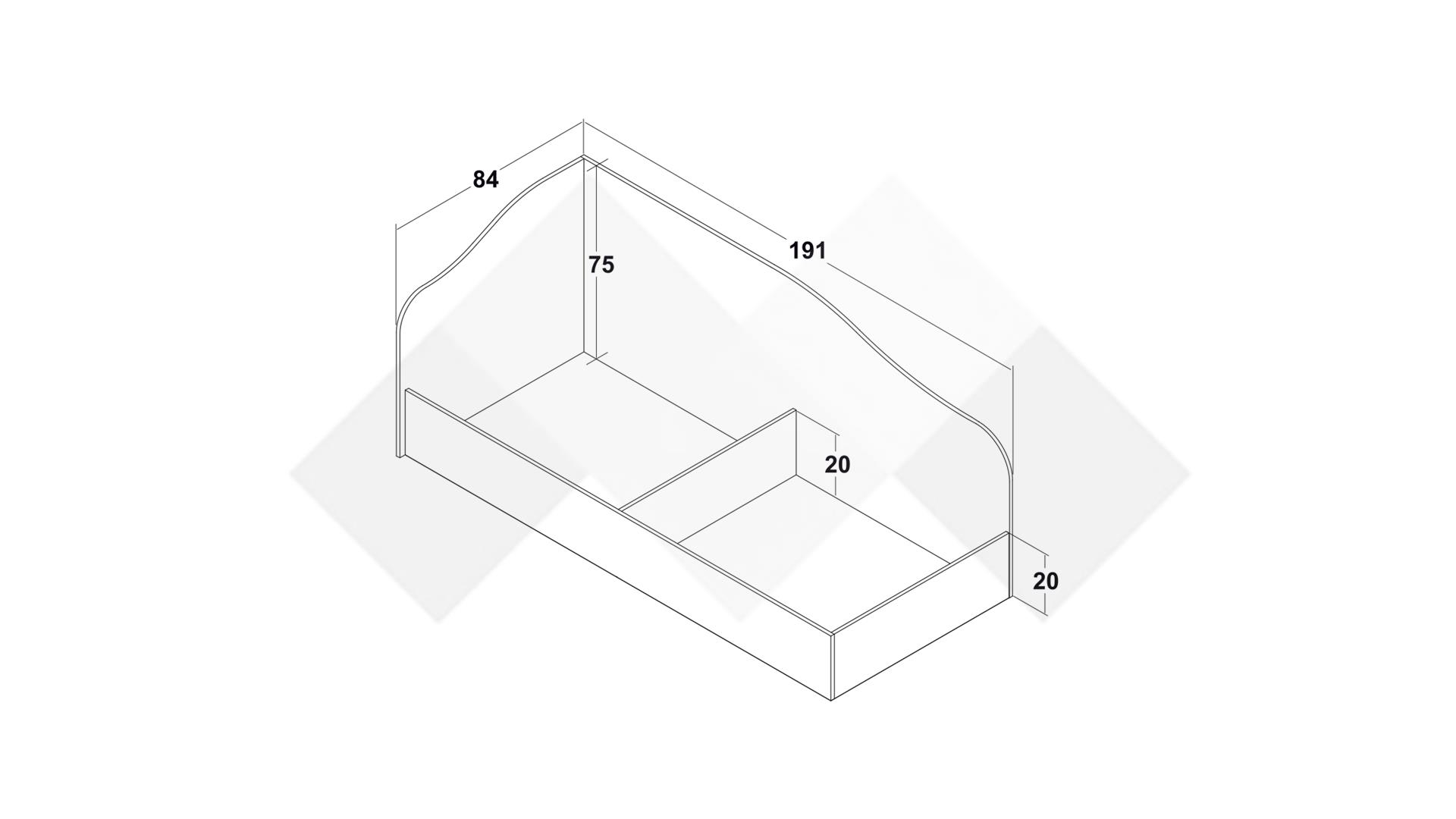 Леглото е съвместимо с еднолицев матрак с размери 82/190 см.