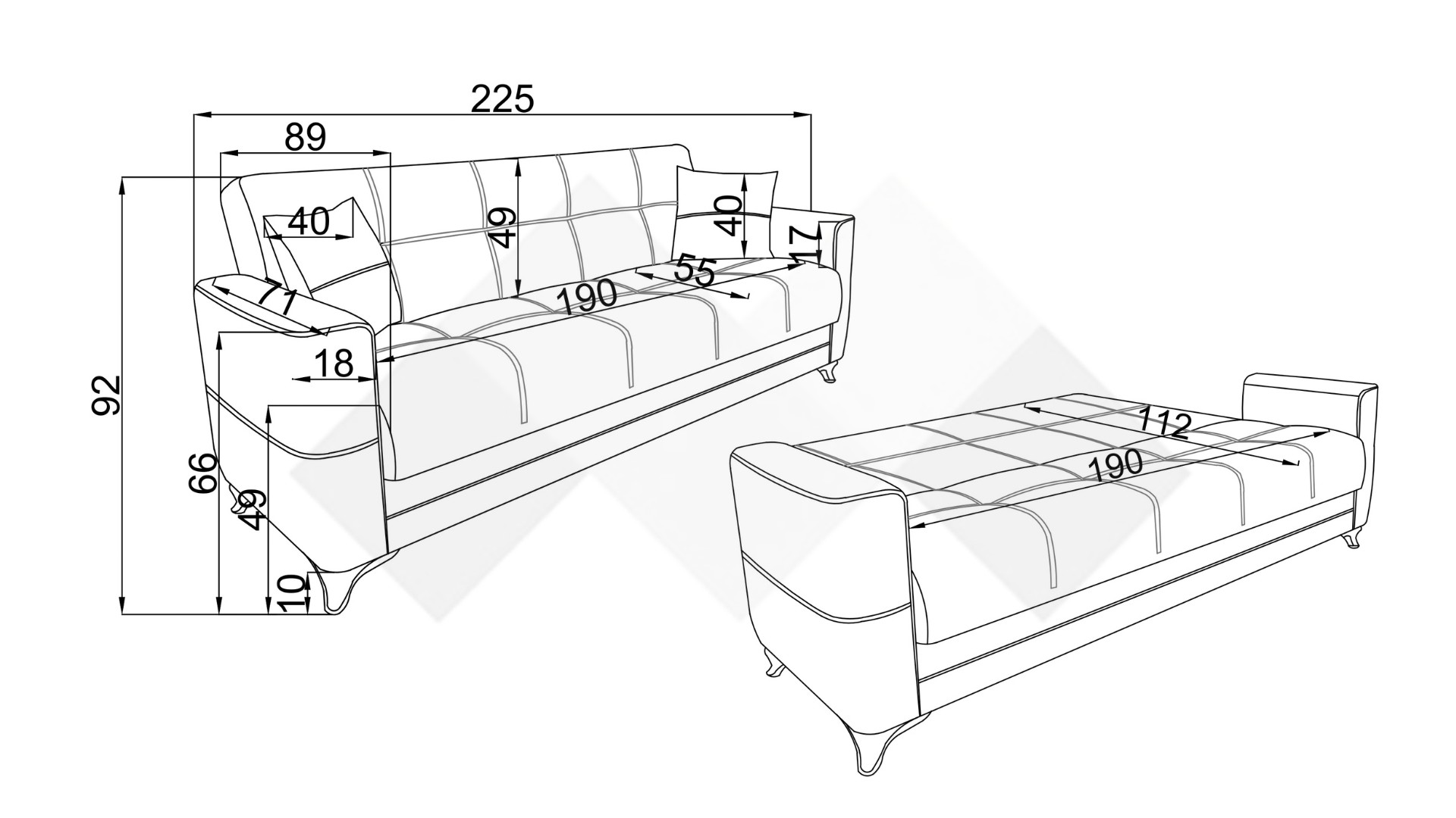 Диванът има здрава конструкция с бонел пружина, която се отличава с устойчивост за дълъг период на употреба.