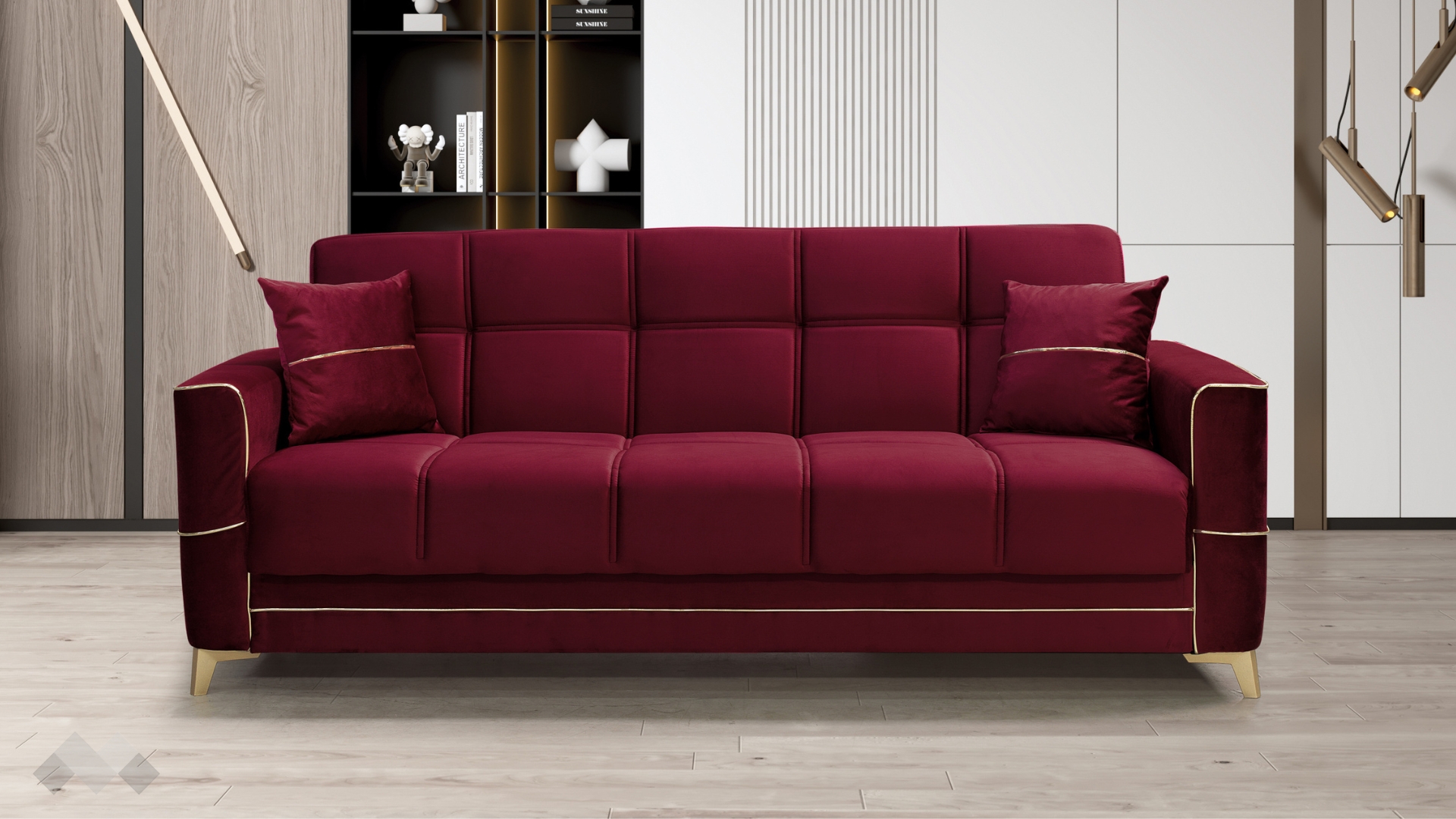 Диван Астон впечатлява с елегантност, изчистени линии и стилна визия. Подлакътниците, обкантени с декоративен златен кант и крака в златно, в комбинация с фигуралните шевове по дамаската и умело подбрания ѝ цвят, го превръщат в истинско интериорно бижу.