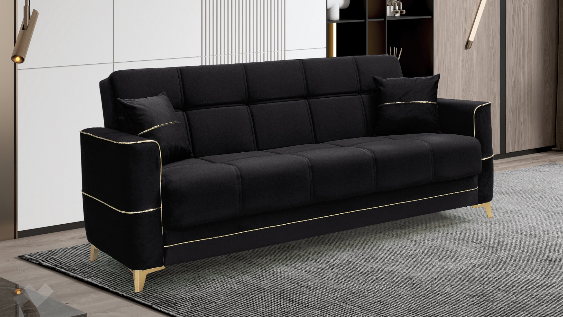 Диван Астон впечатлява с елегантност, изчистени линии и стилна визия. Подлакътниците, обкантени с декоративен златен кант и крака в златно, в комбинация с фигуралните шевове по дамаската и умело подбрания ѝ цвят, го превръщат в истинско интериорно бижу.