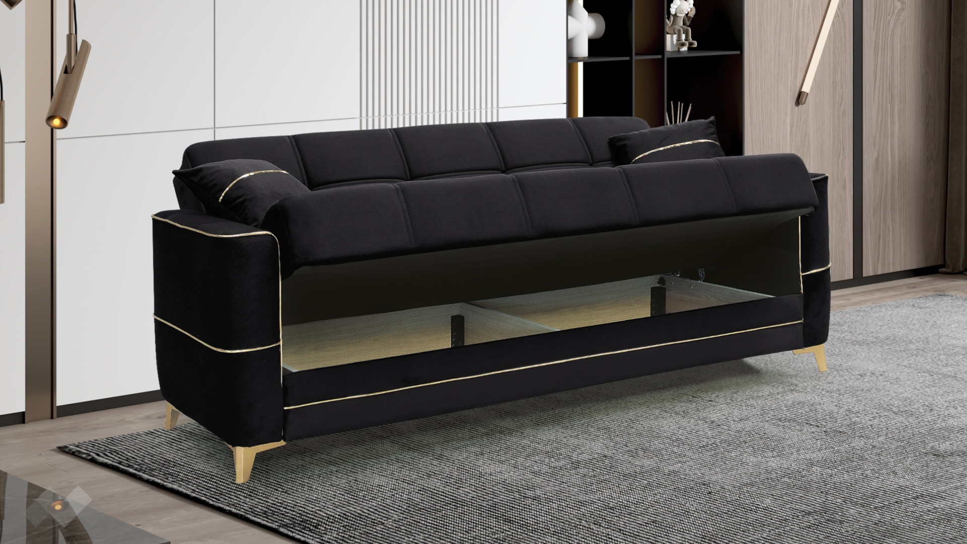 Диванът има здрава конструкция с бонел пружина, която се отличава с устойчивост за дълъг период на употреба.