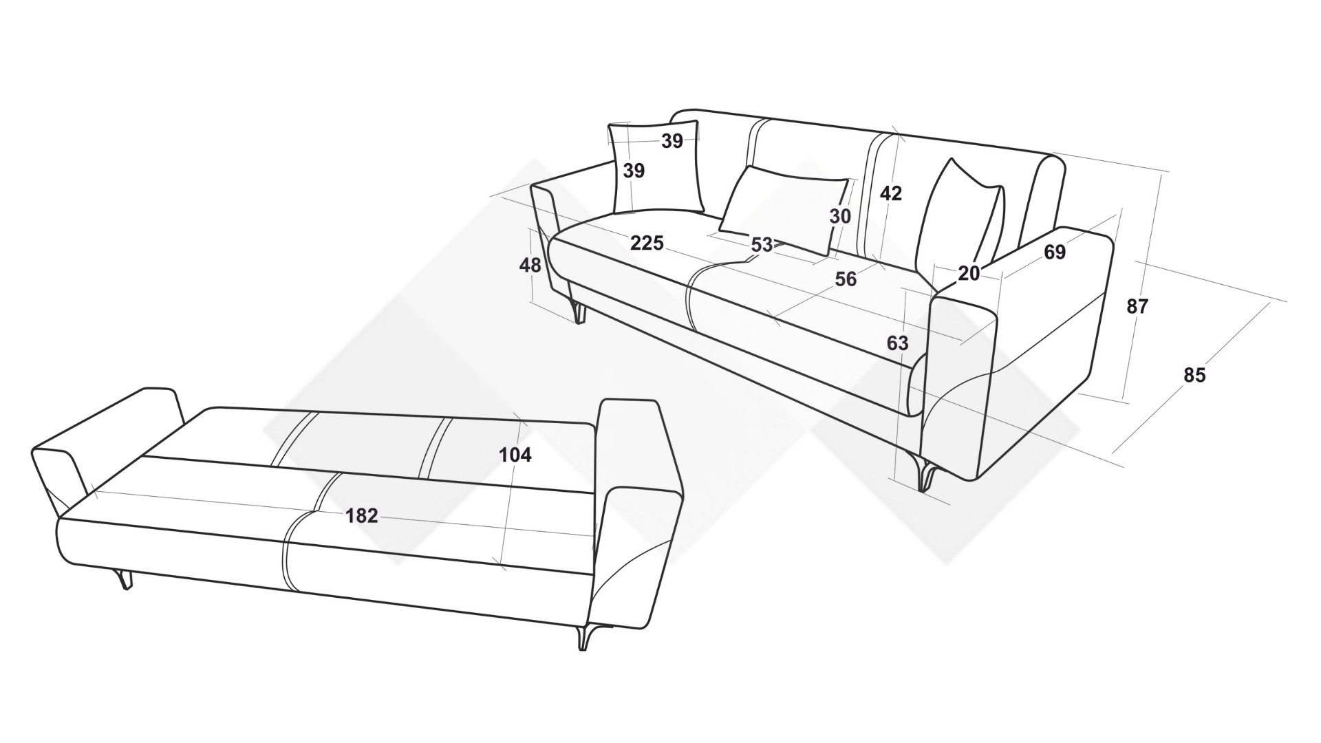 Д: 225 см Ш: 85 см В: 87 см