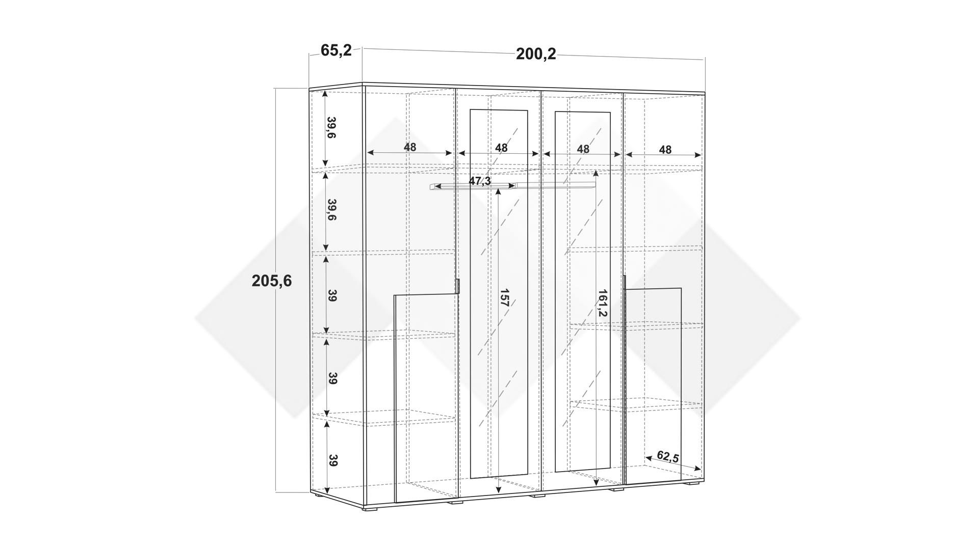Д: 200,2см Ш: 65,2 см В: 205,6 см