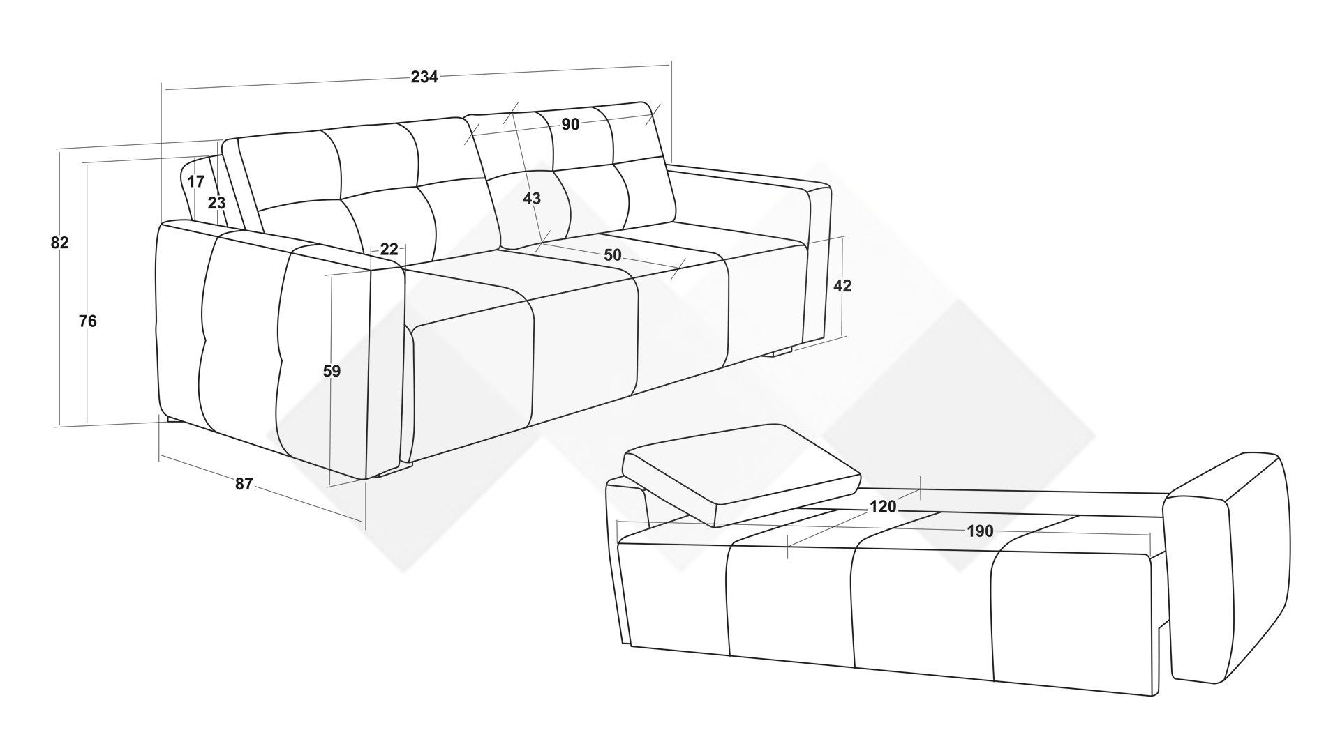 Благодарение на клик-клак механизма, диванът се трансформира бързо и лесно в удобно легло с площ за сън 190/120 см. Само с едно движение можеш да го разгънеш или прибереш, което го прави изключително удобен за ежедневна употреба или за настаняване на гости.